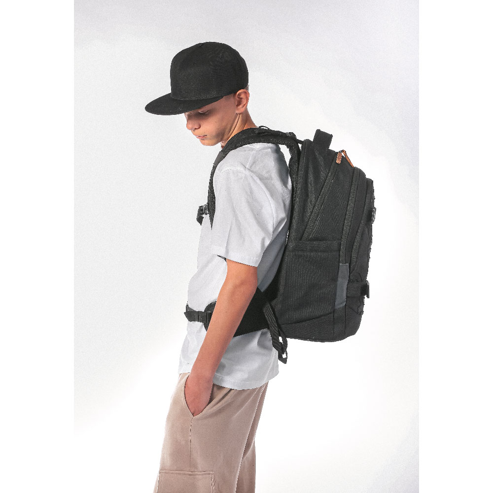 • Ergonomiczny plecak szkolny z trzema osobno zamykanymi komorami z wewnętrznym organizerem i 15-calową przegrodą na laptopa lub na tablet.