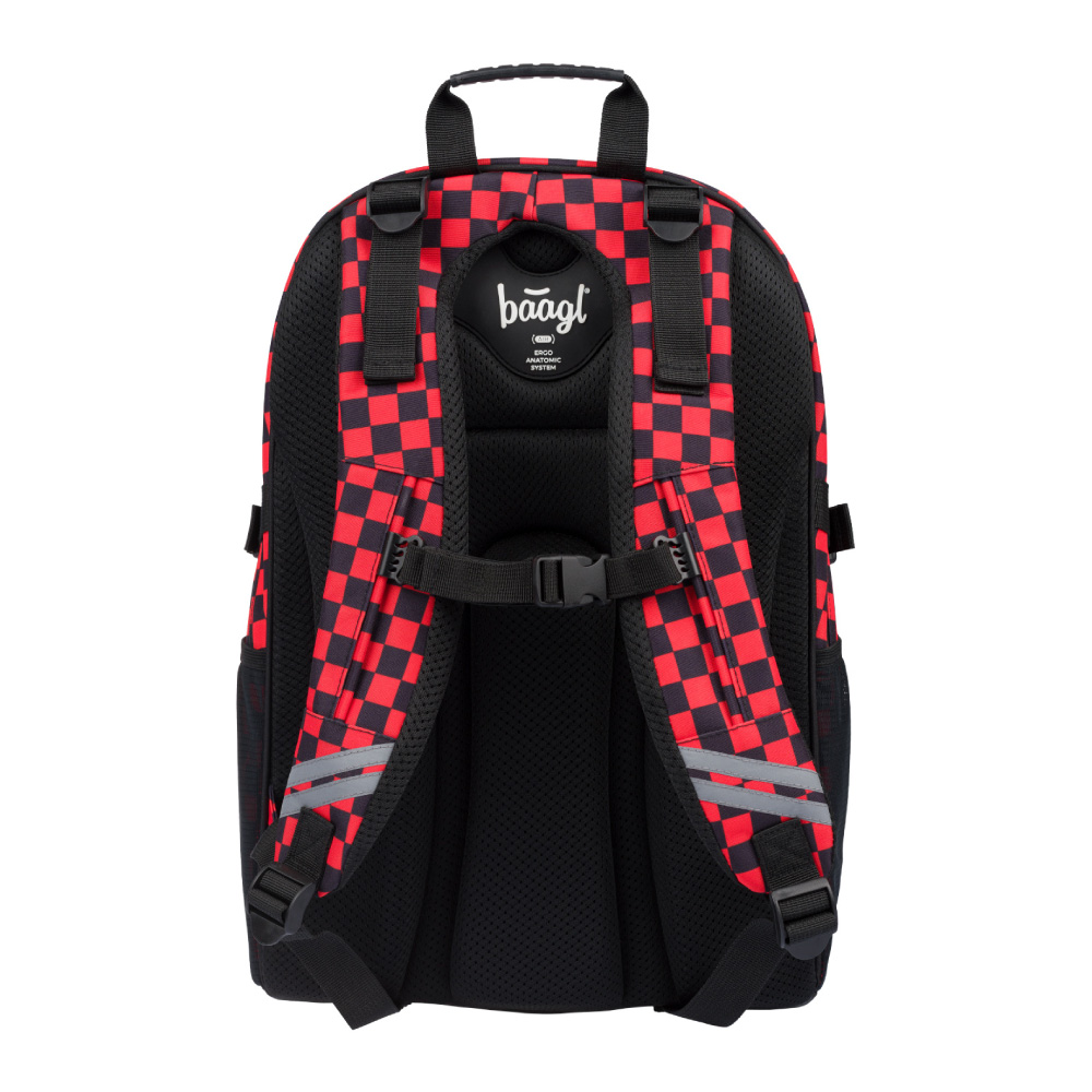 • Ergonomiczny plecak szkolny z trzema osobno zamykanymi komorami z wewnętrznym organizerem i 15-calową przegrodą na laptopa lub na tablet.