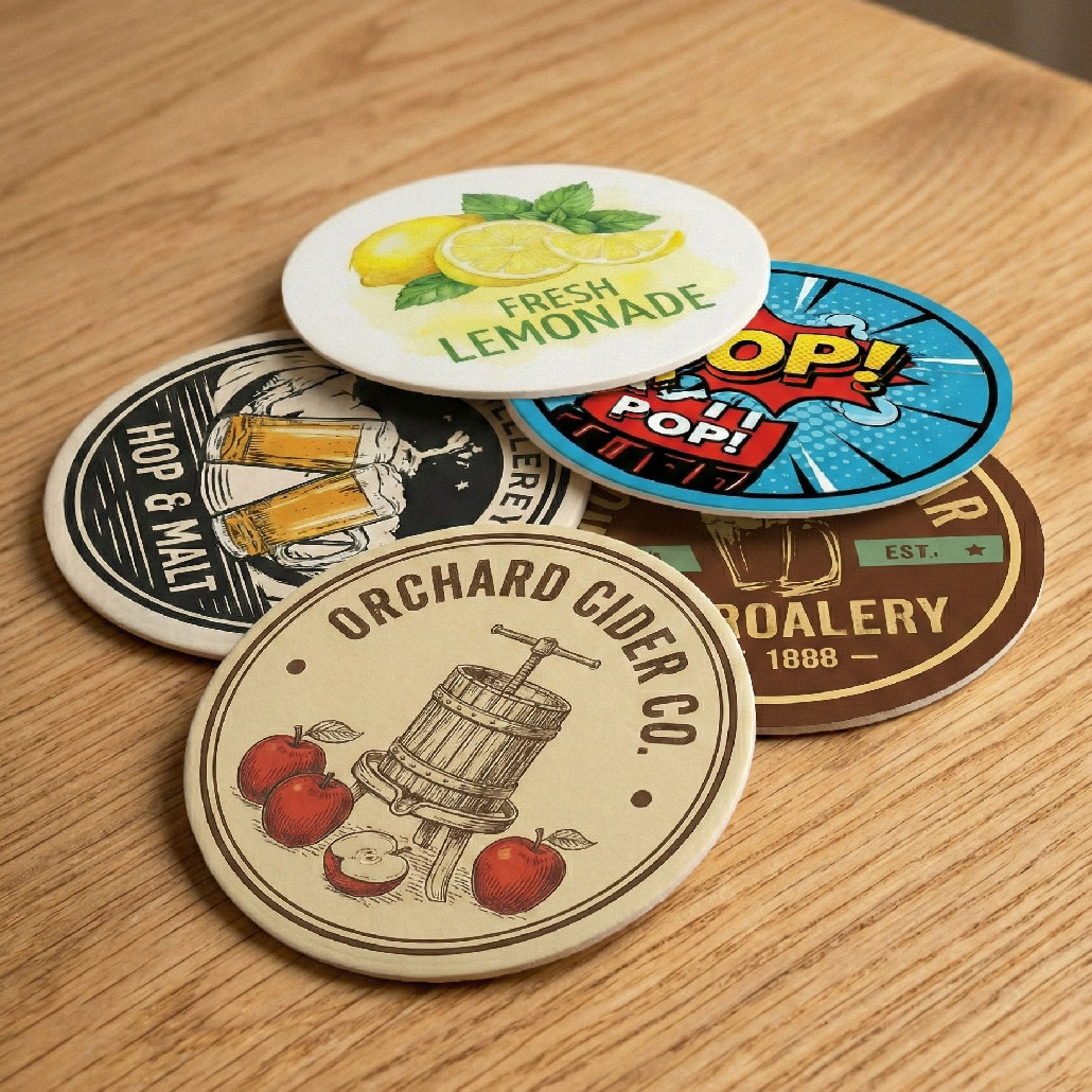 Produkujemy podkładki pod piwo na zamówienie ze specjalnego papieru o gramaturze 610 g i grubości 1,5 mm.