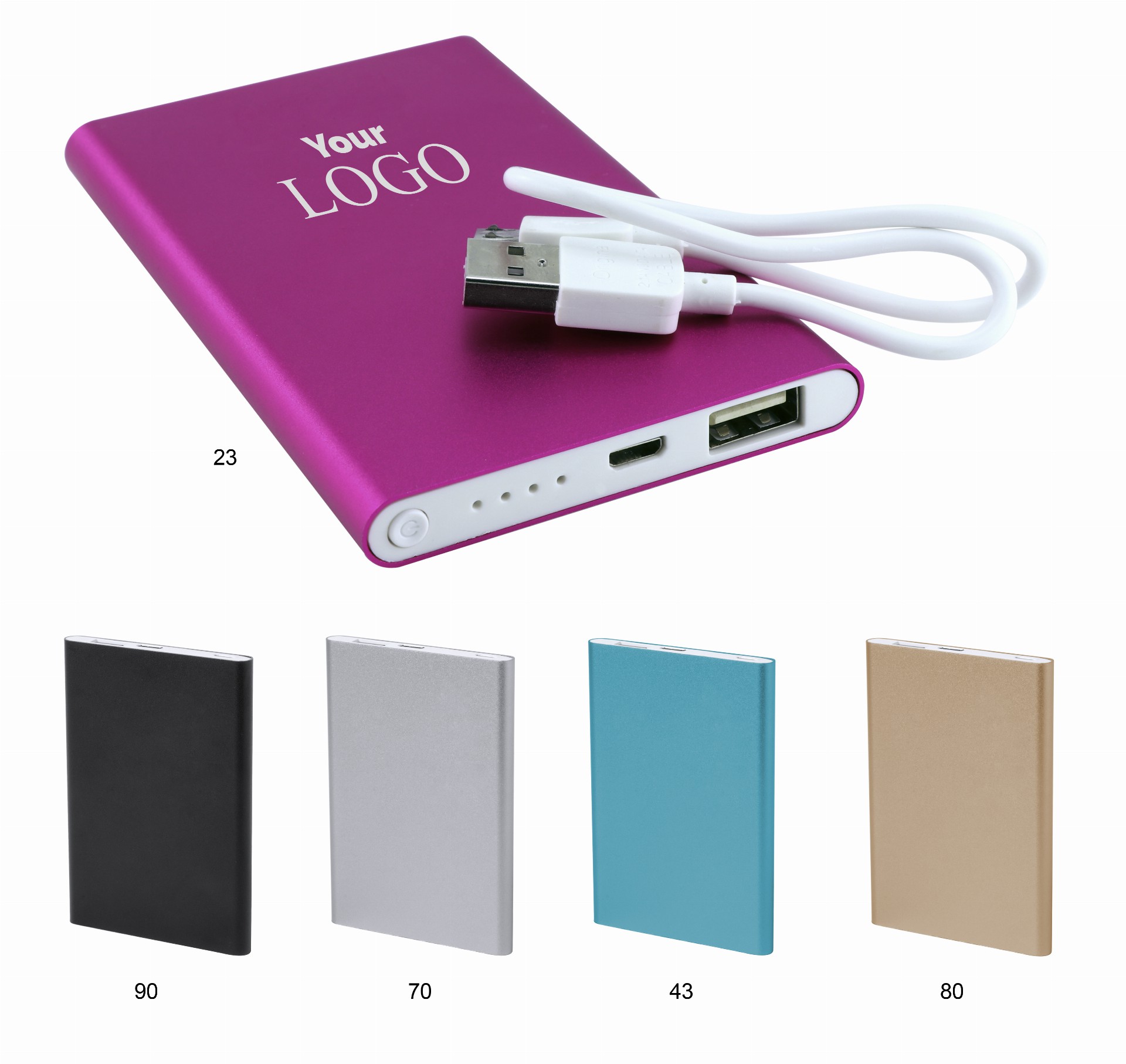 Aluminiowy power bank ze wskaźnikiem ładowania, kabel USB/micro USB w zestawie.