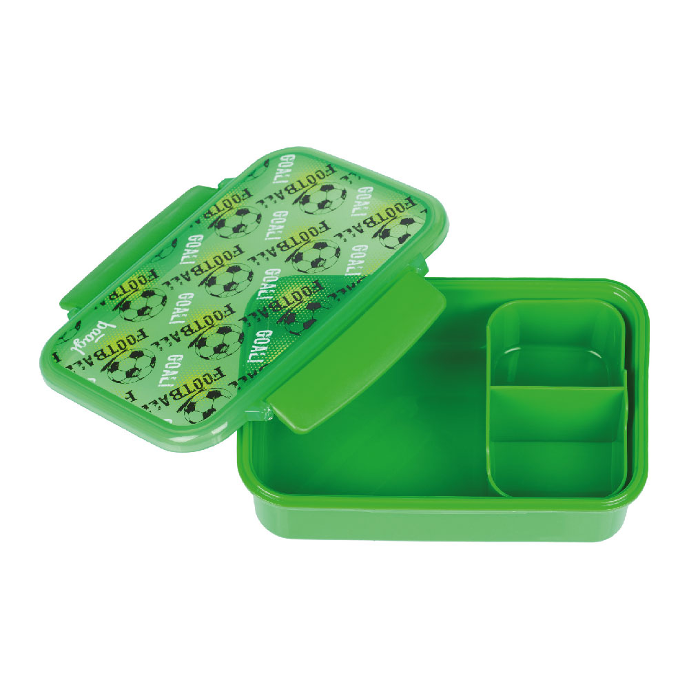 • Plastikowe pudełko zawiera wyjmowane przegródki, które umożliwiają oddzielenie poszczególnych posiłków.