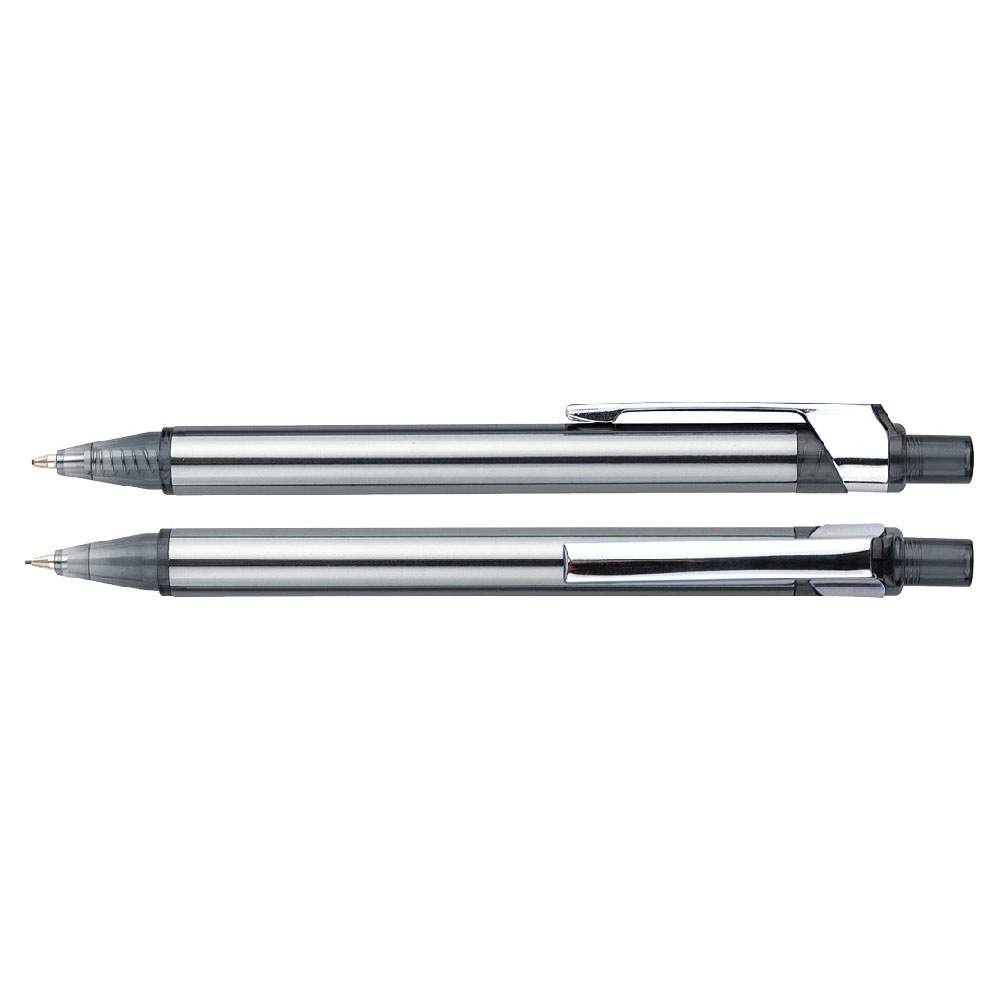 Sada hlinikové kuličkové pero a mikrotužky s barevným tělem, chromovanou kovovu sponou s plastovými transparentními doplňky v plastovém transparentním boxu