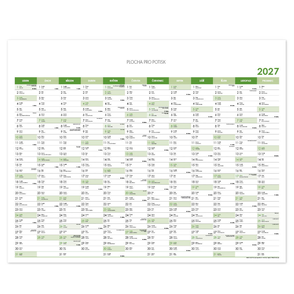 Ścienna mapa planer 2027 CZ - 100 x 80 cm - zielona