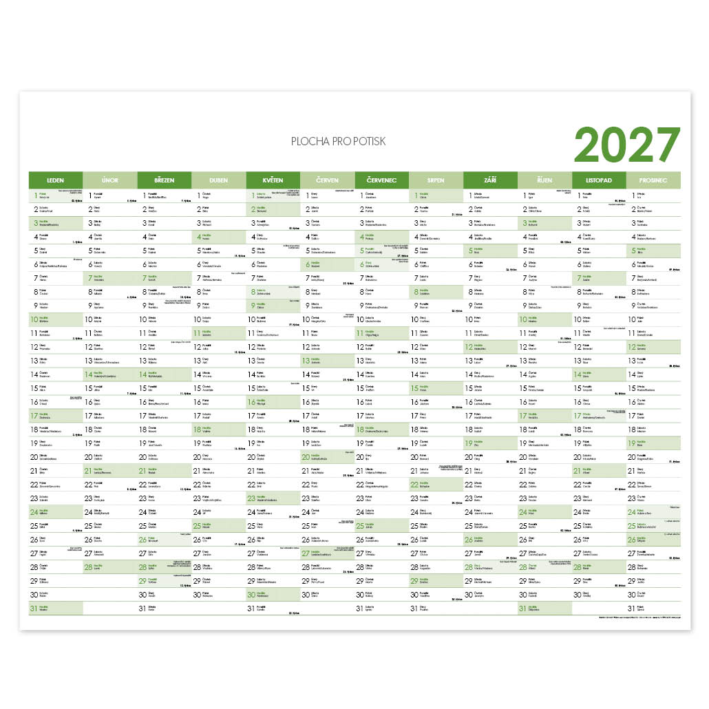 Ścienna mapa planer 2027 CZ - 124 x 100 cm - zielona