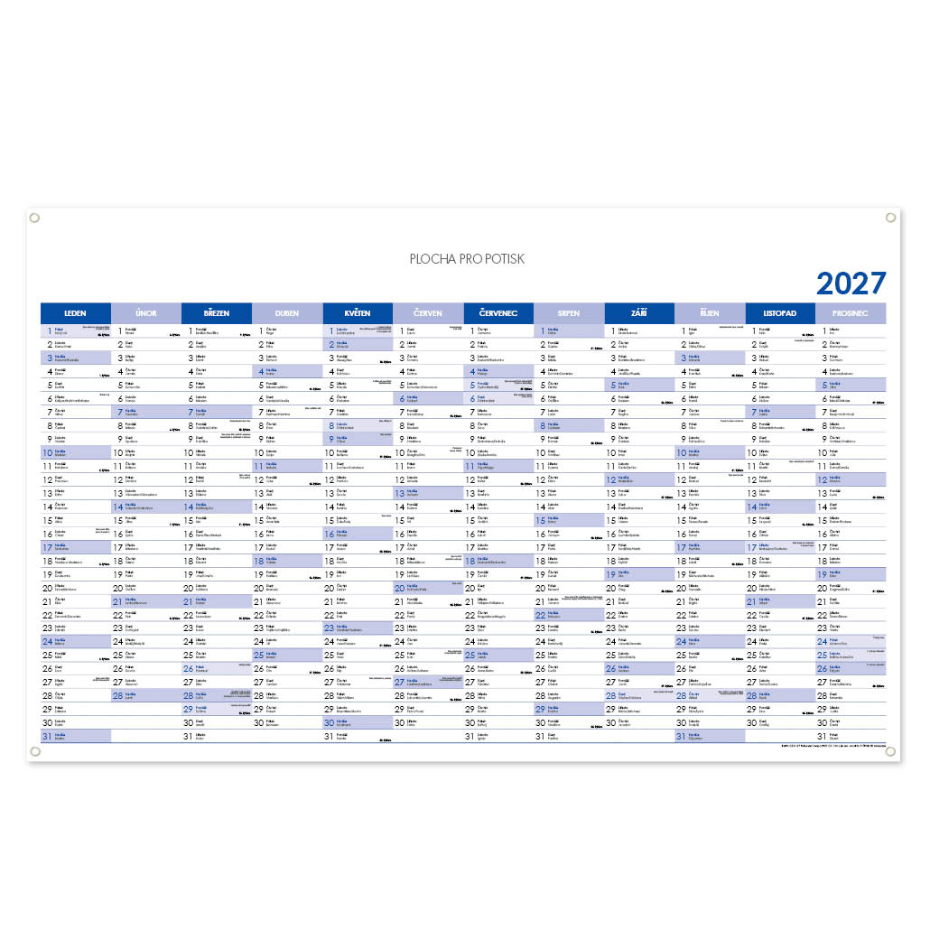 Ścienna mapa planer 2027 CZ z oczkami na zawieszenie - 100 x 63 cm - niebieski