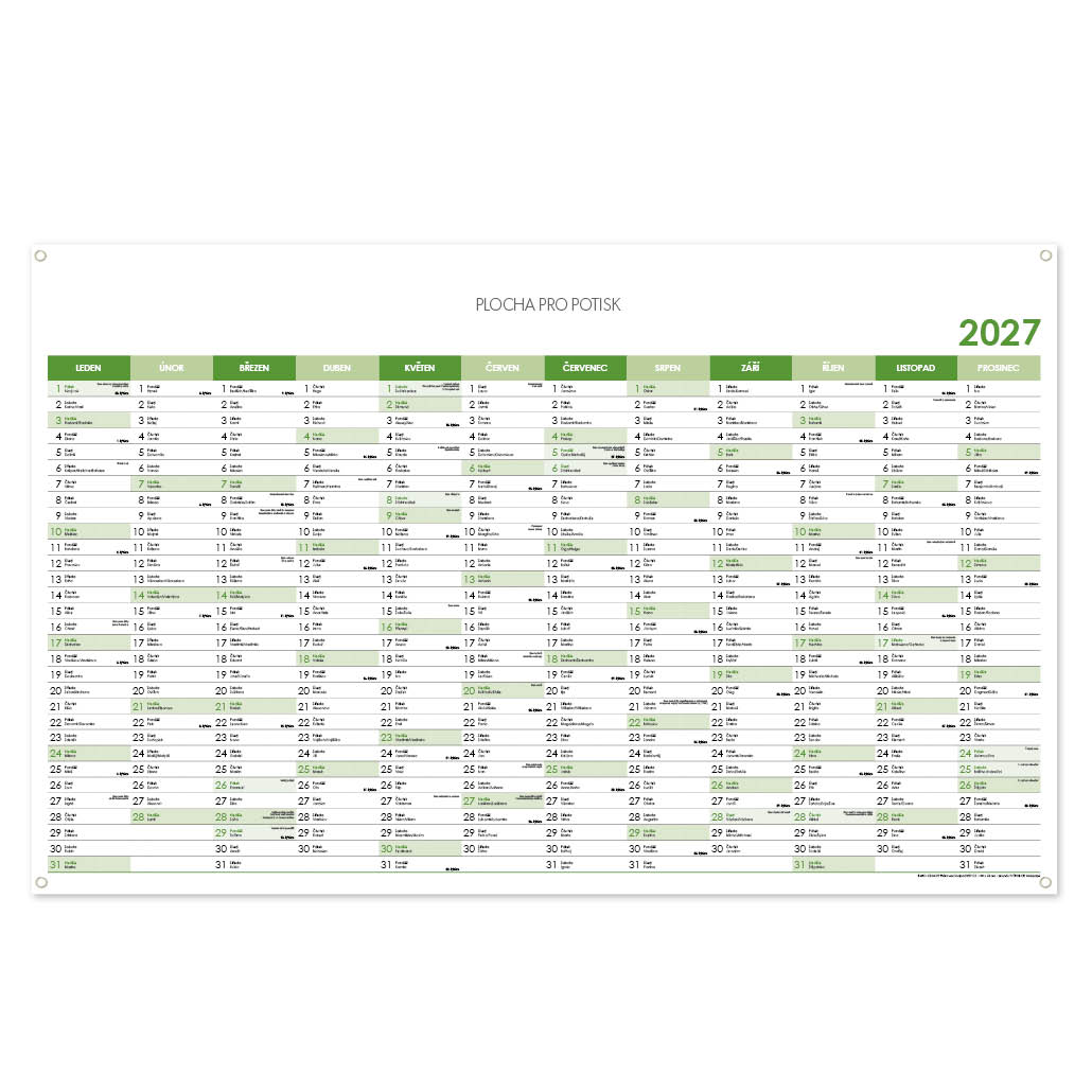 Ścienna mapa planer 2027 CZ z oczkami na zawieszenie - 100 x 63 cm - zielona