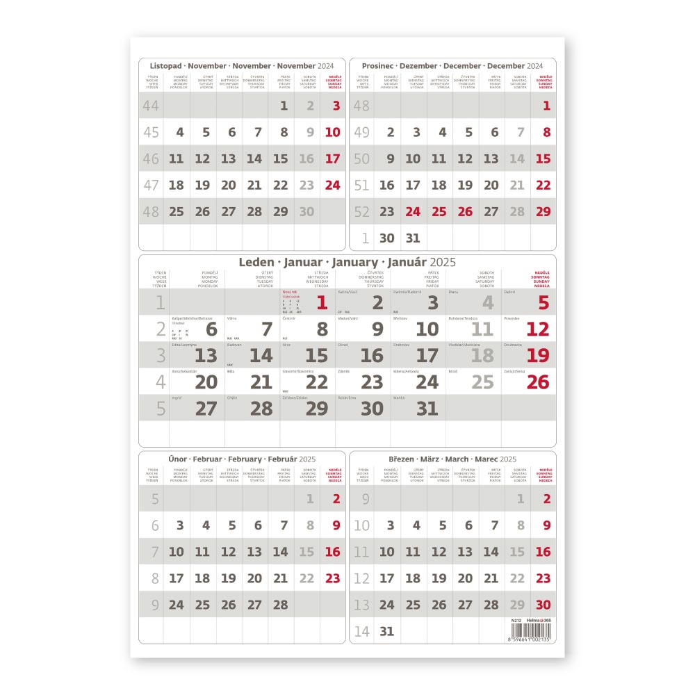 Ścienny Kalendarz 2025 - Pięciomiesięczny szary
