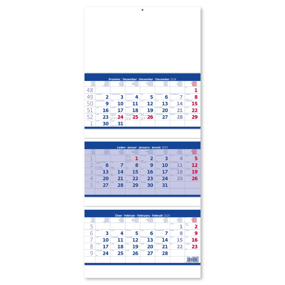 Ścienny Kalendarz 2025 - Trzymiesięczny składany niebieski