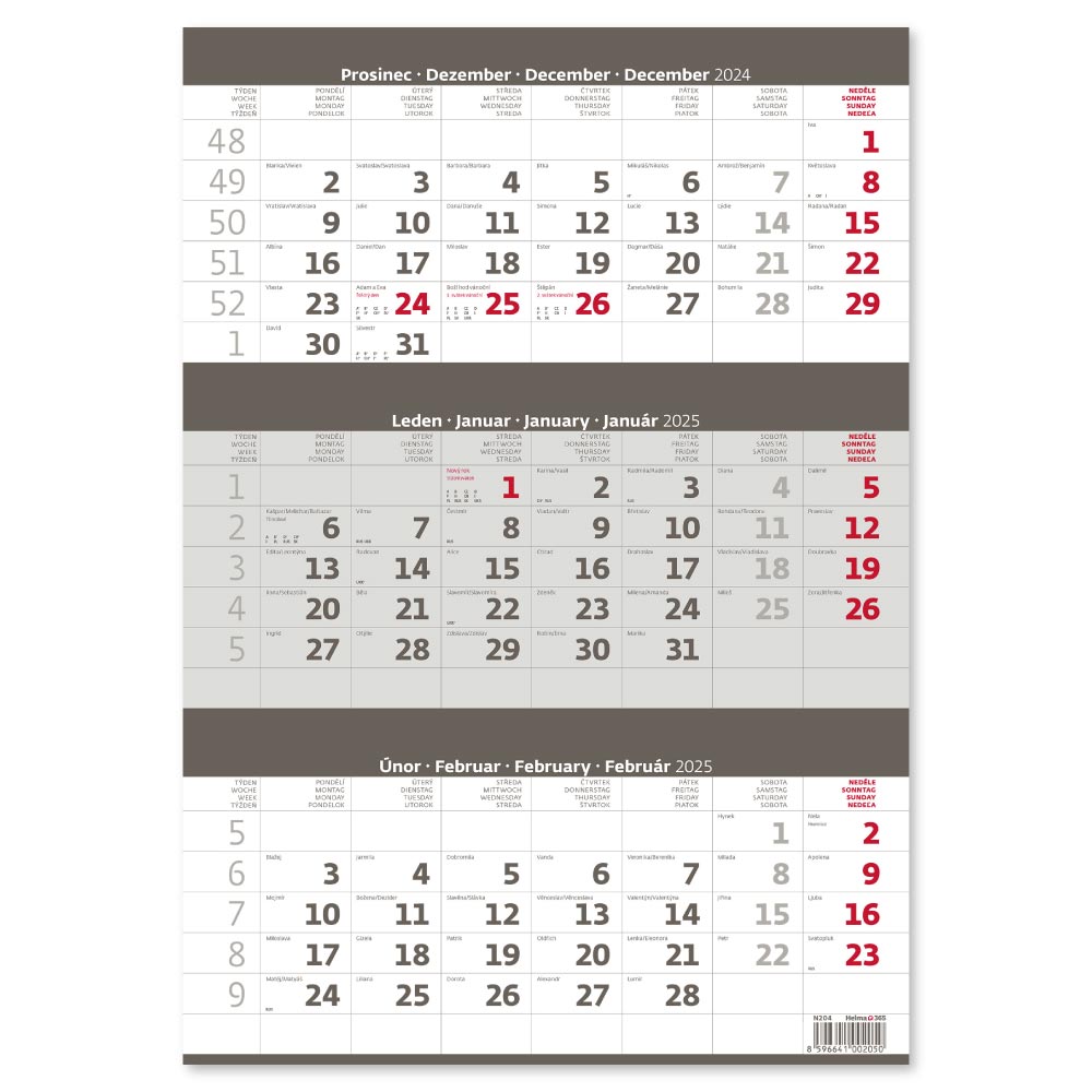 Ścienny Kalendarz 2025 - Trzymiesięczny szary