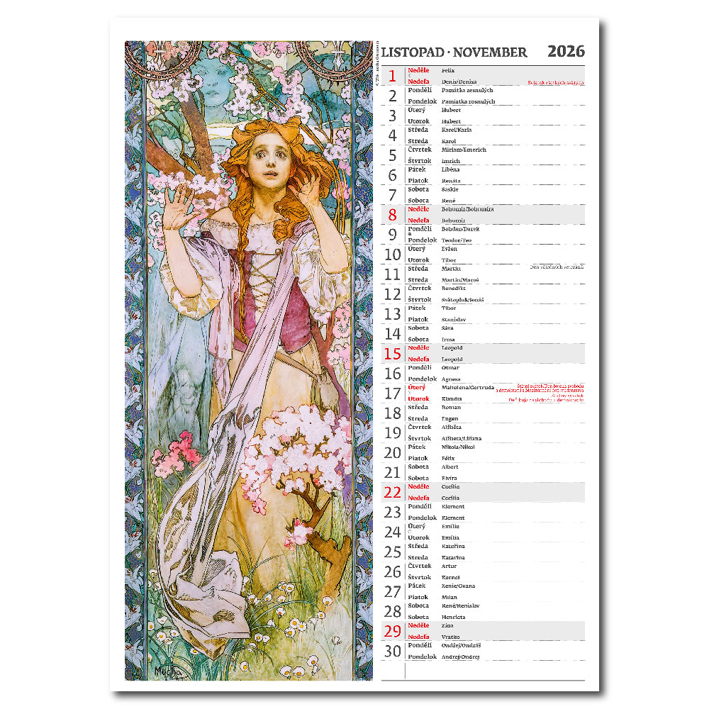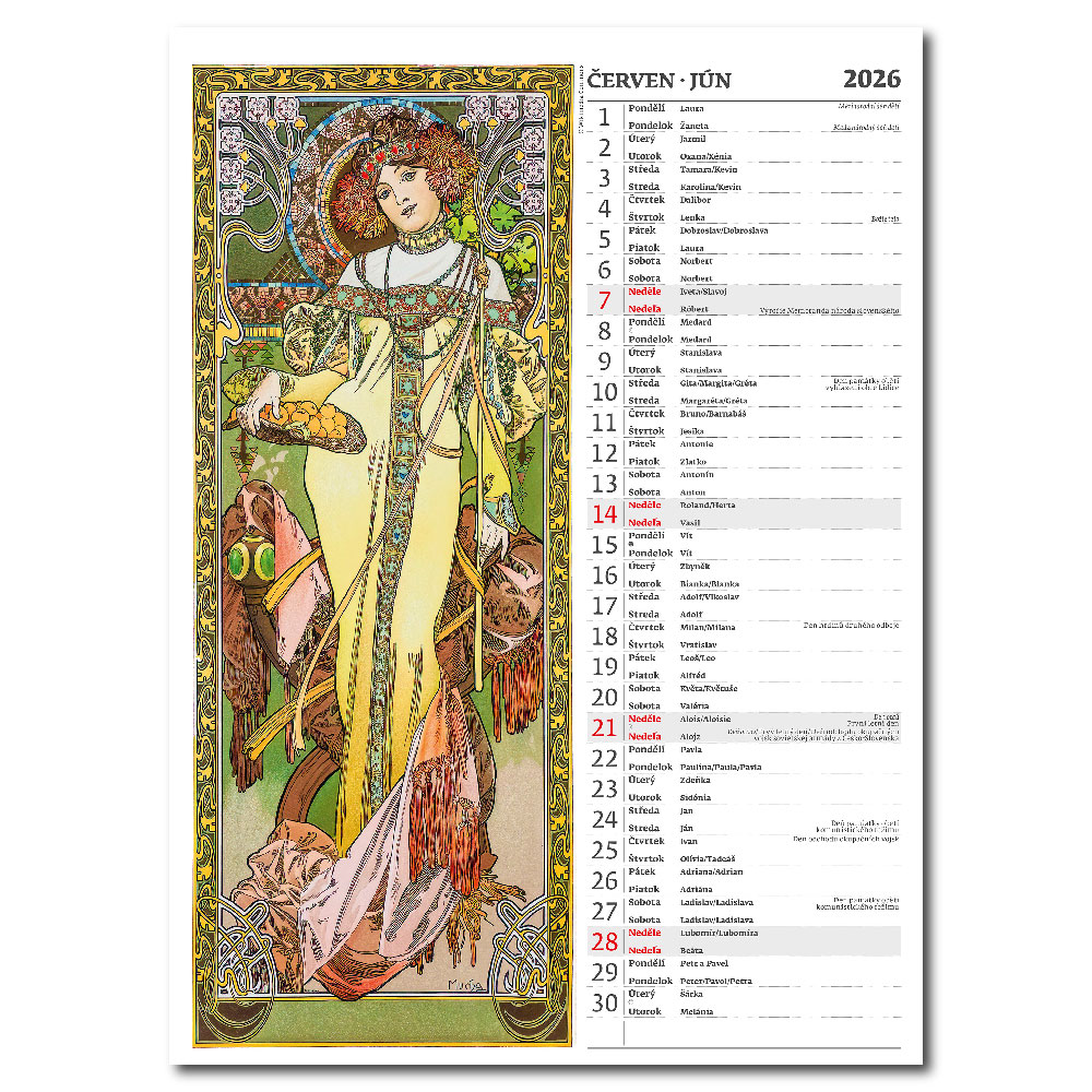 Ścienny Kalendarz 2026 - Alfons Mucha