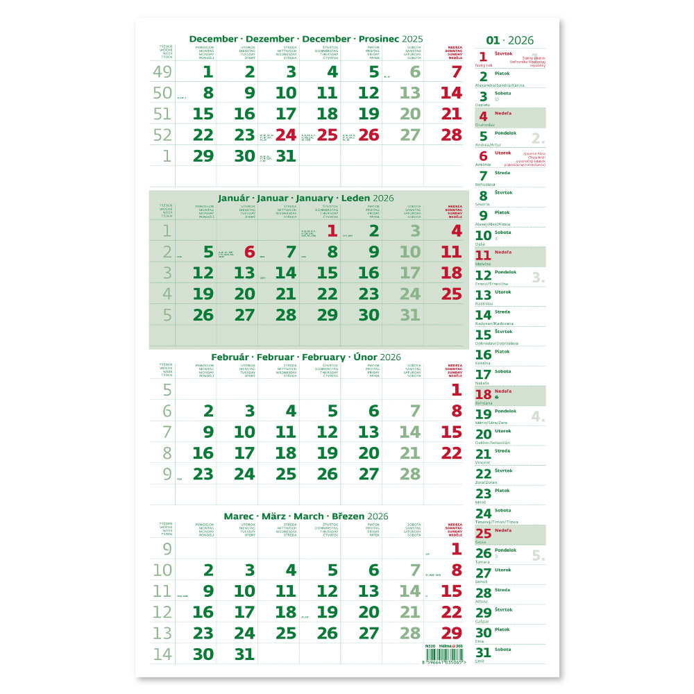 Kalendarz: SK 4-miesięczny kalendarz imion ze świętami wybranych krajów europejskich