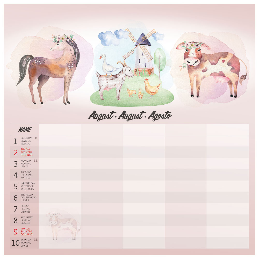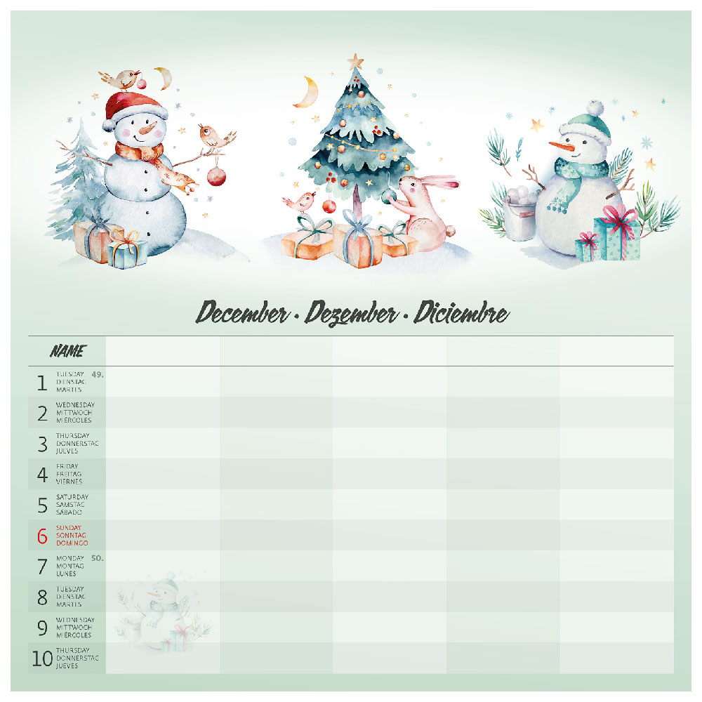 Zakres kalendarza: 14 arkuszy