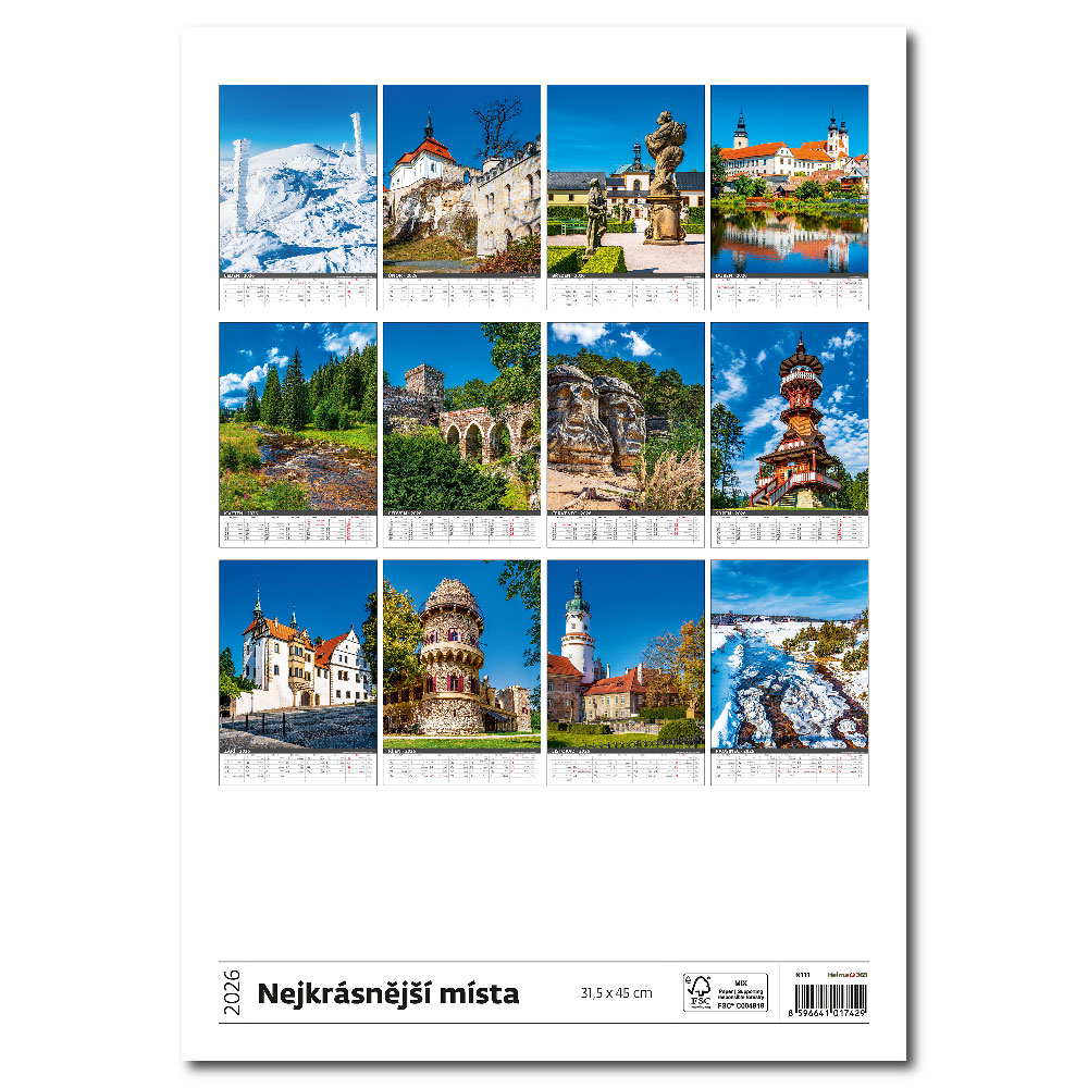 Ścienny Kalendarz 2026 - Najpiękniejsze miejsca Czeskiej Republiki