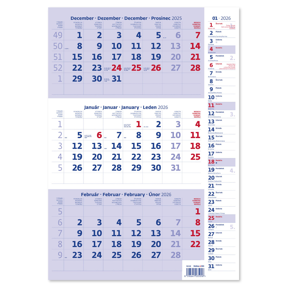 Ścienny Kalendarz 2026 - Niebieski trzymiesięczny kalendarz z notatkami