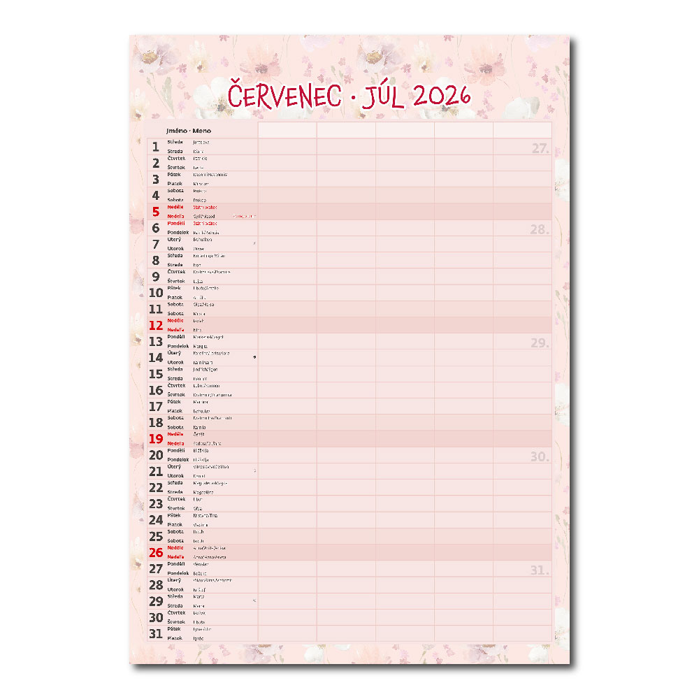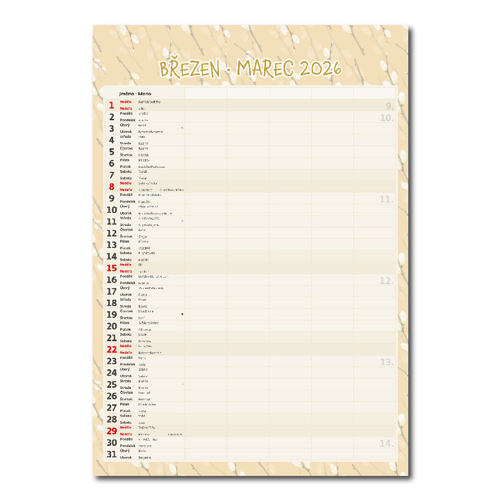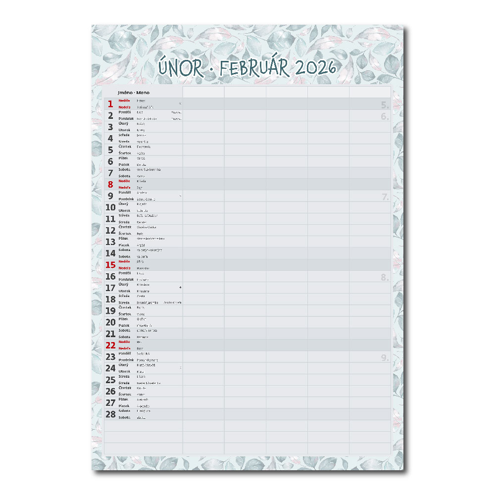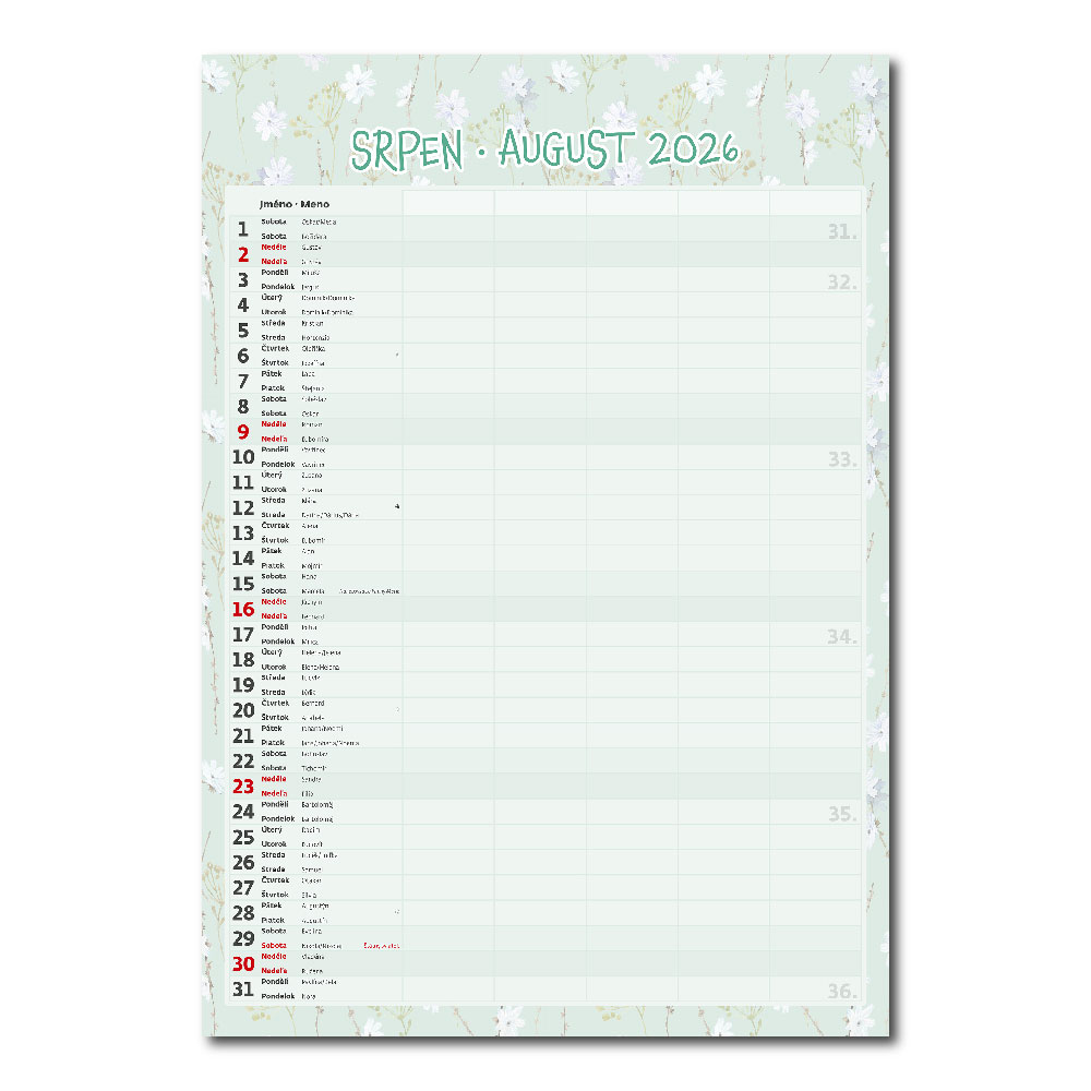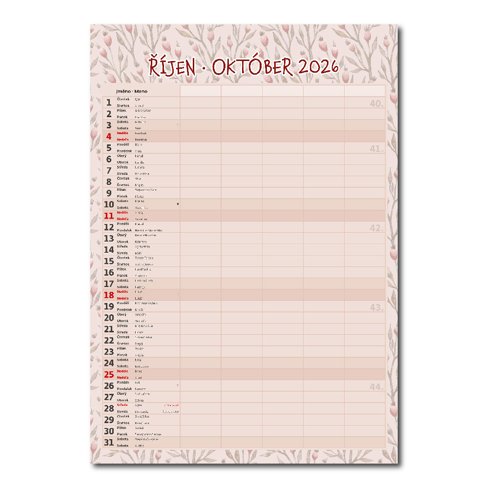 Kalendarium: czeskie/słowacki miesięczne z imionami