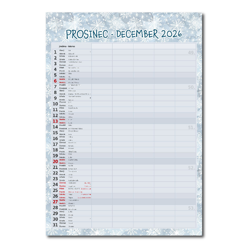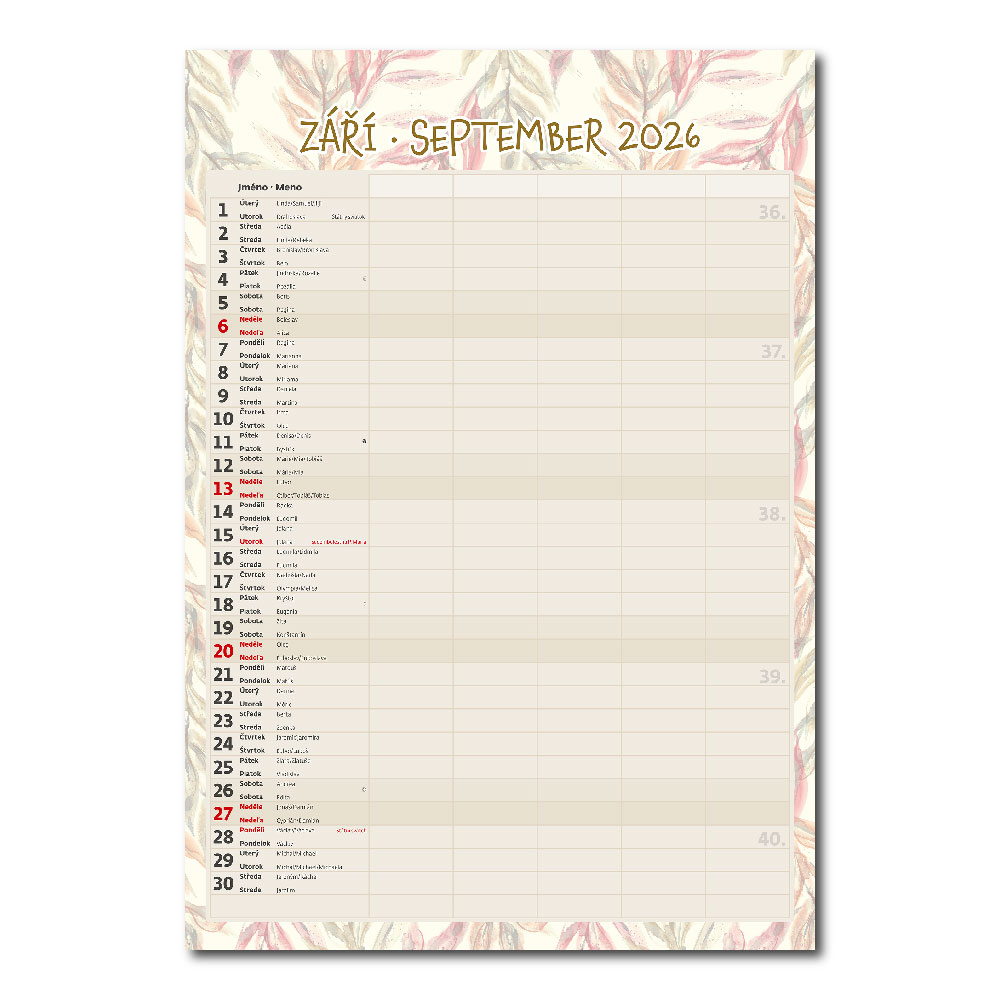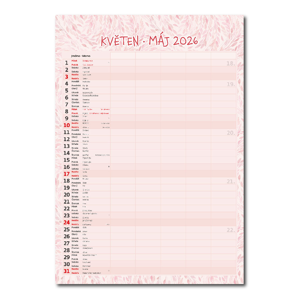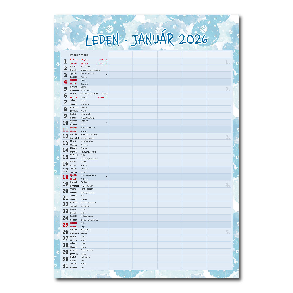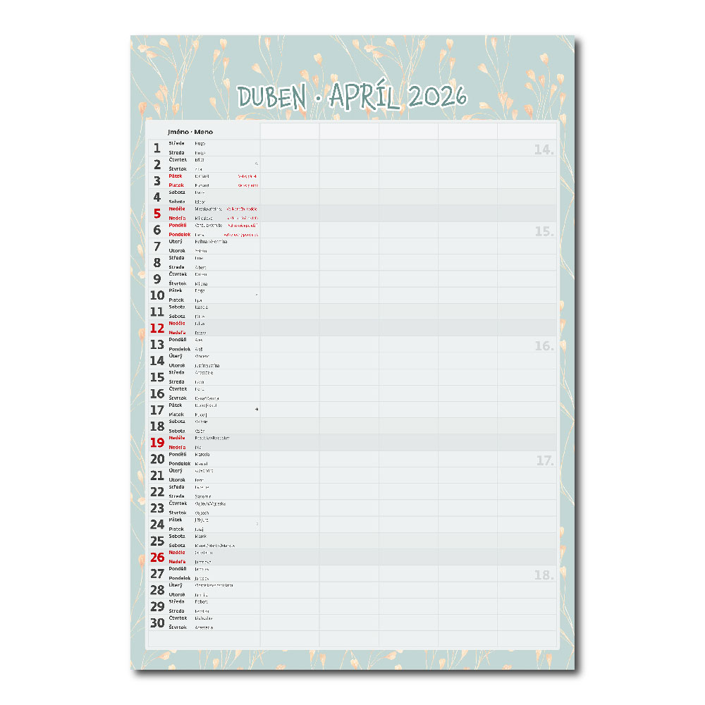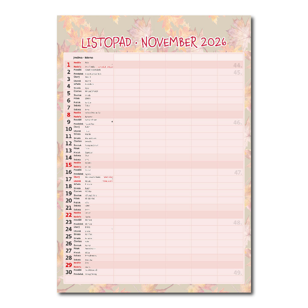 Kalendarium: czeskie/słowacki miesięczne z imionami