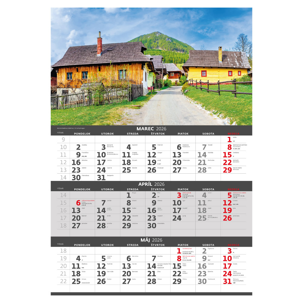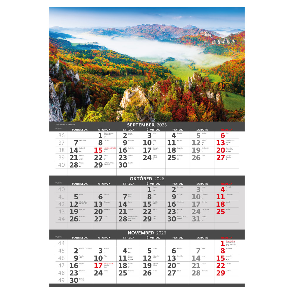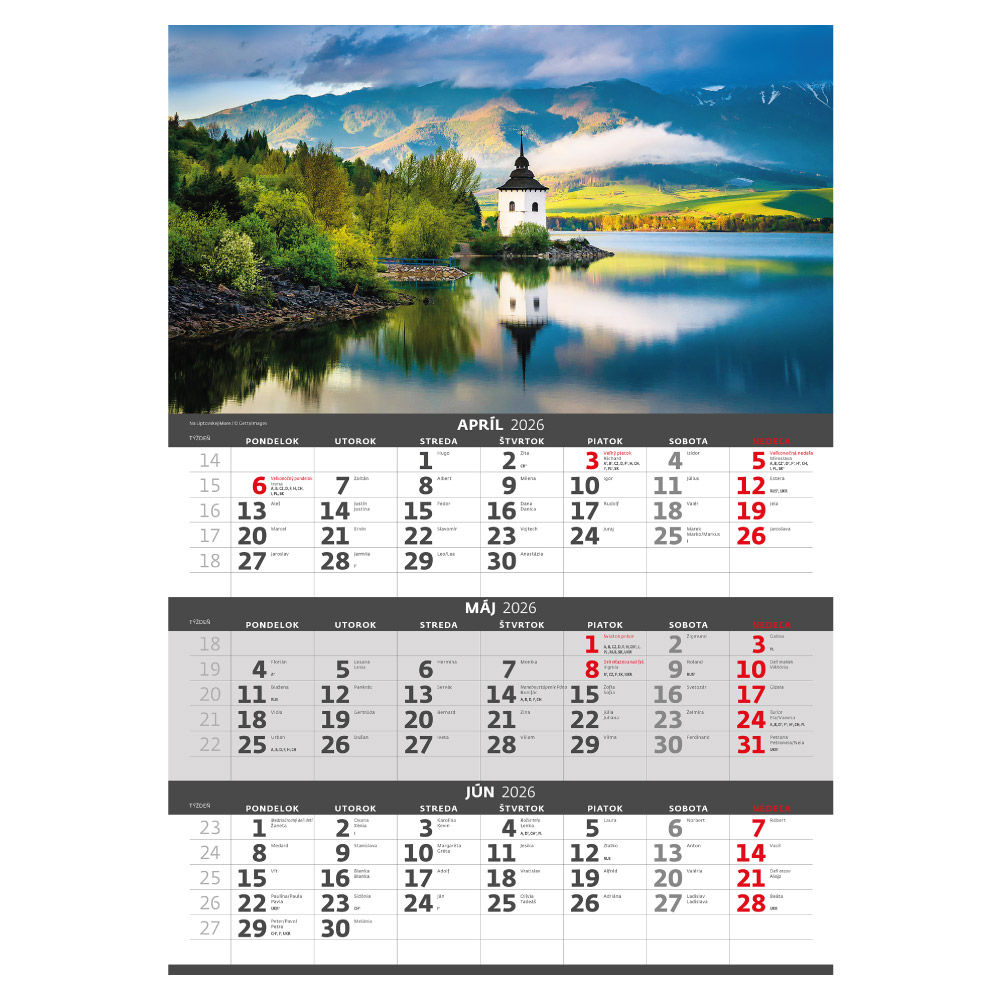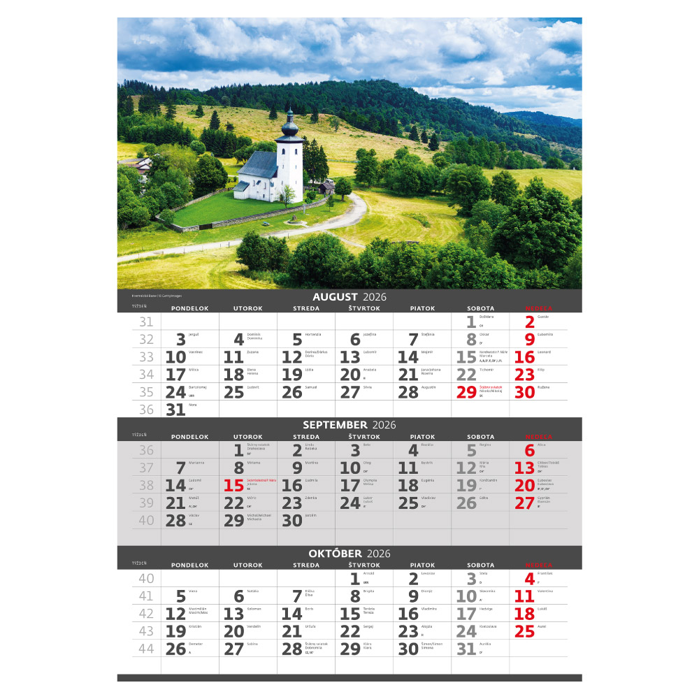Ścienny Kalendarz 2026 - Trzymiesięczny Słowacja