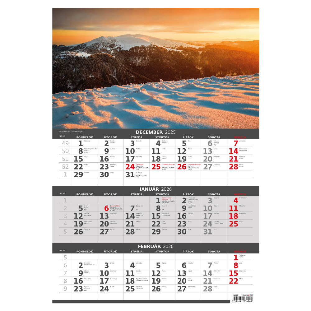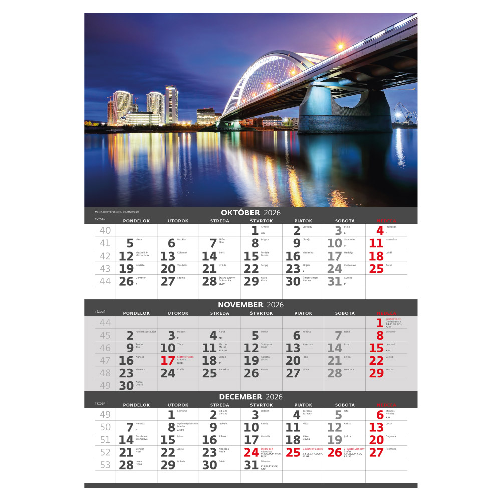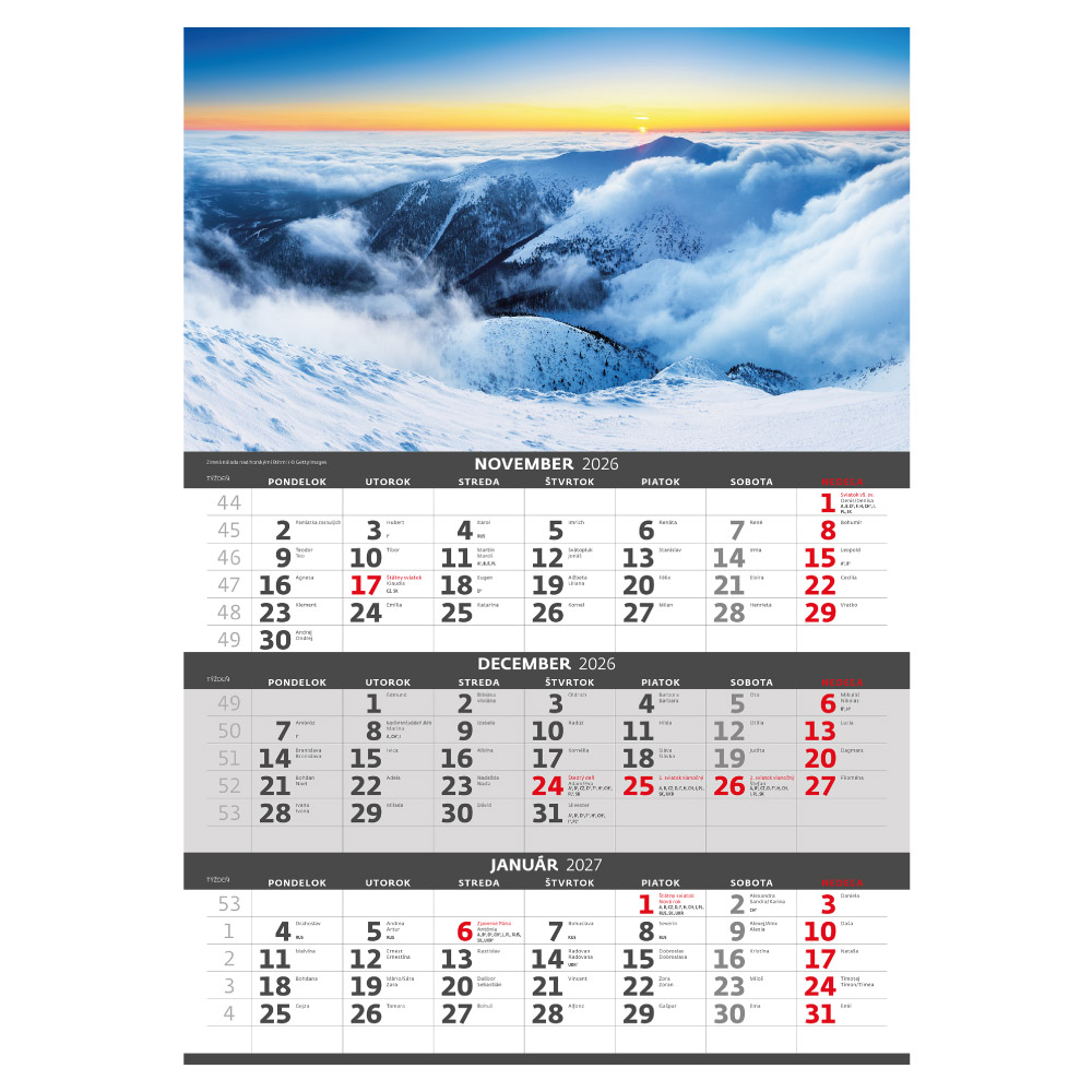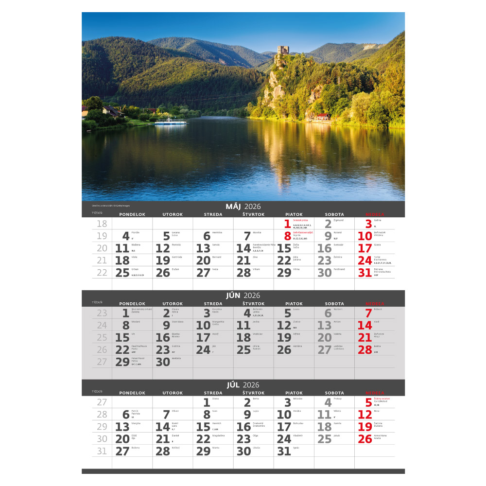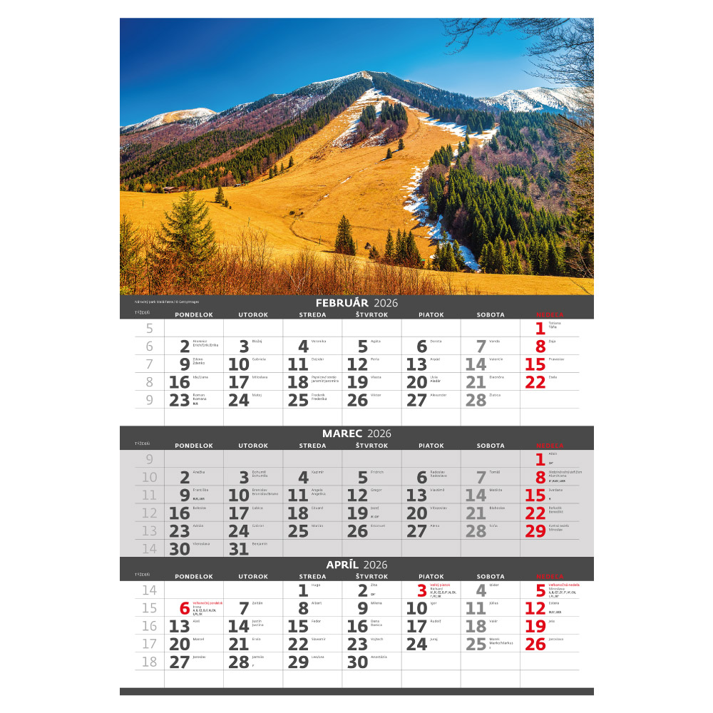 Ścienny Kalendarz 2026 - Trzymiesięczny Słowacja