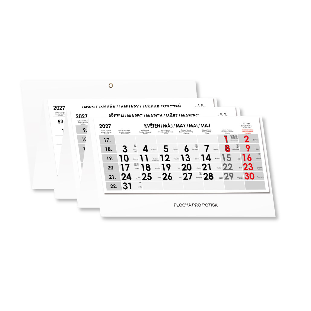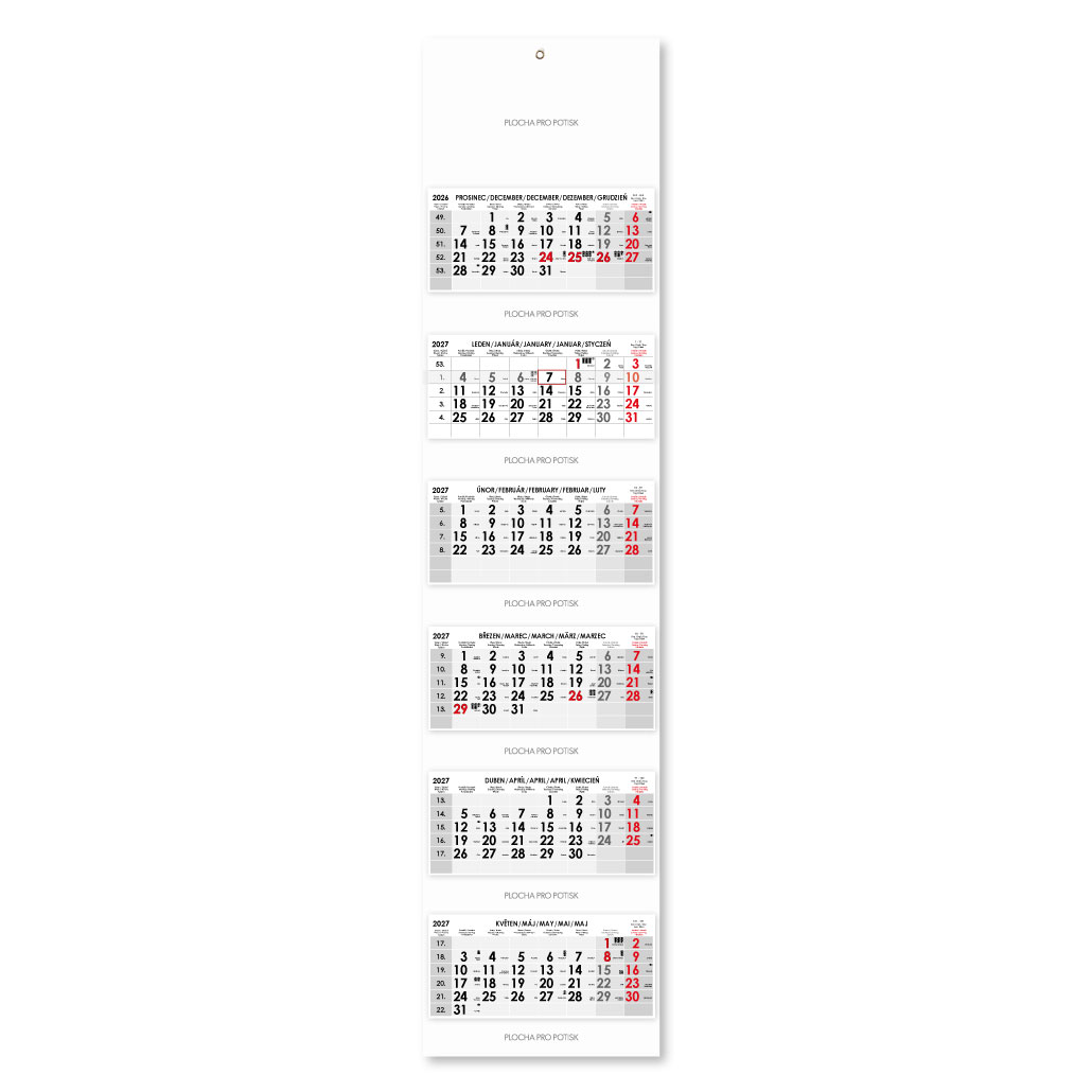 Sześciomiesięczny kalendarz Sixto składany czeski 2027 - szary