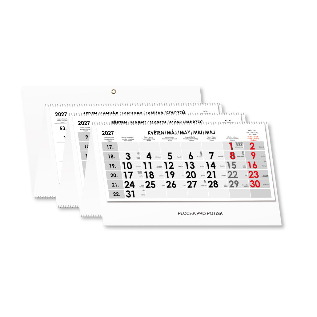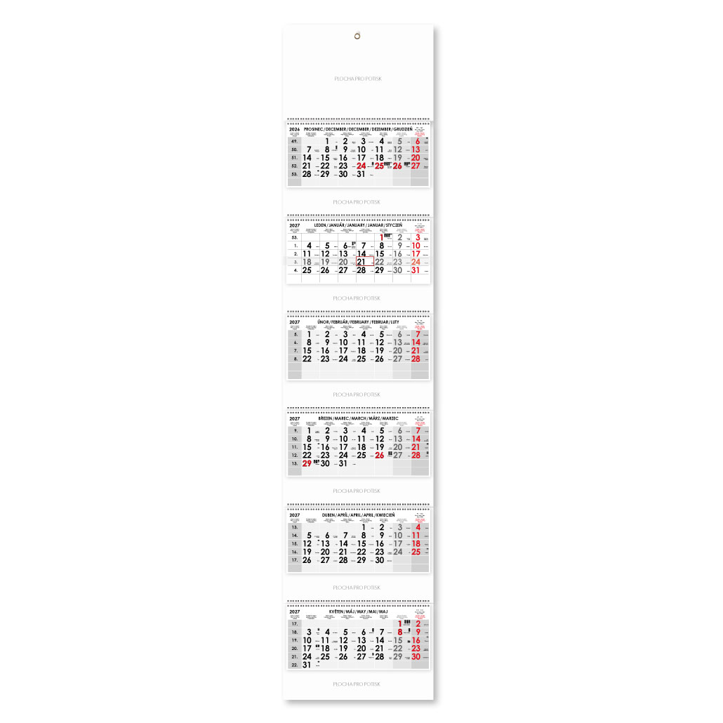 Sześciomiesięczny kalendarz Sixto składany czeski ze spiralą 2027 - szary