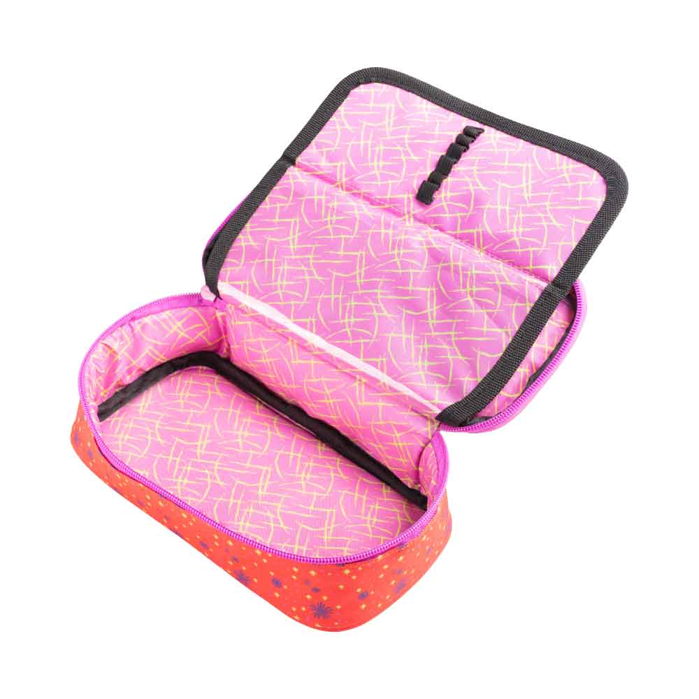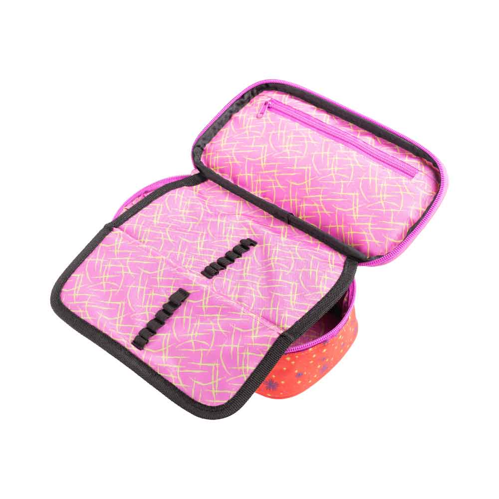 • Twardy piórnik zamykany na zamek. Wewnętrza kieszeń na zamek. Kieszeń z planem lekcji.