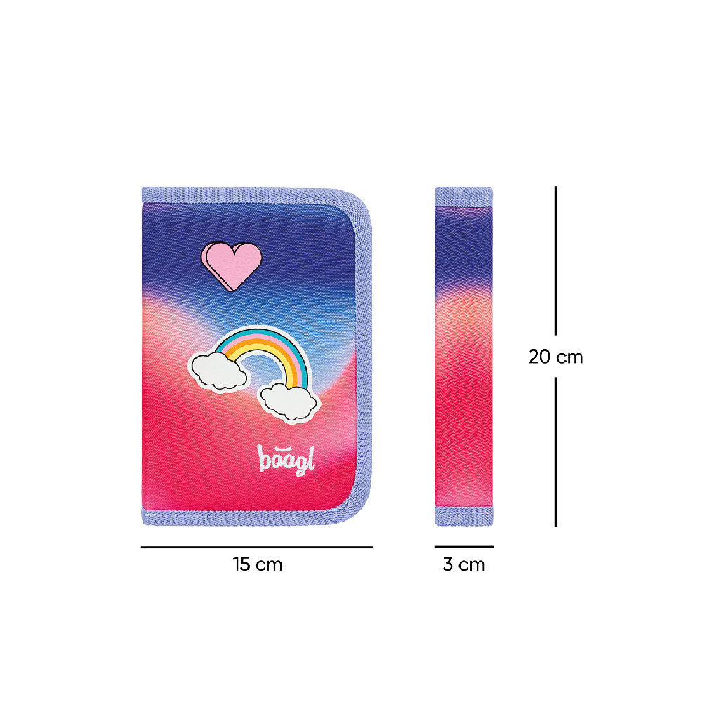 • Jednokomorowy piórnik wyposażony w dwie klapy