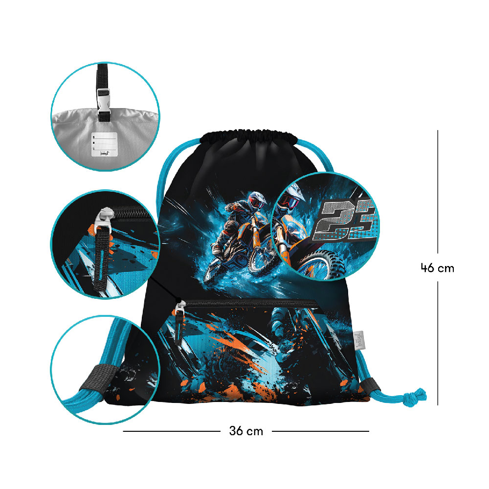 Szkolny set Airy Motocykl - tornister, piórnik, worek na buty