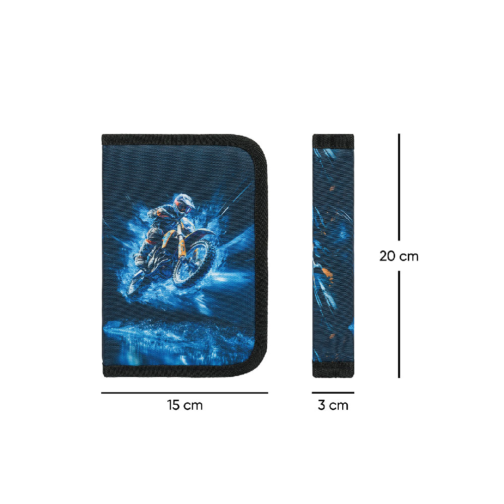 • Jednokomorowy piórnik wyposażony w dwie klapy