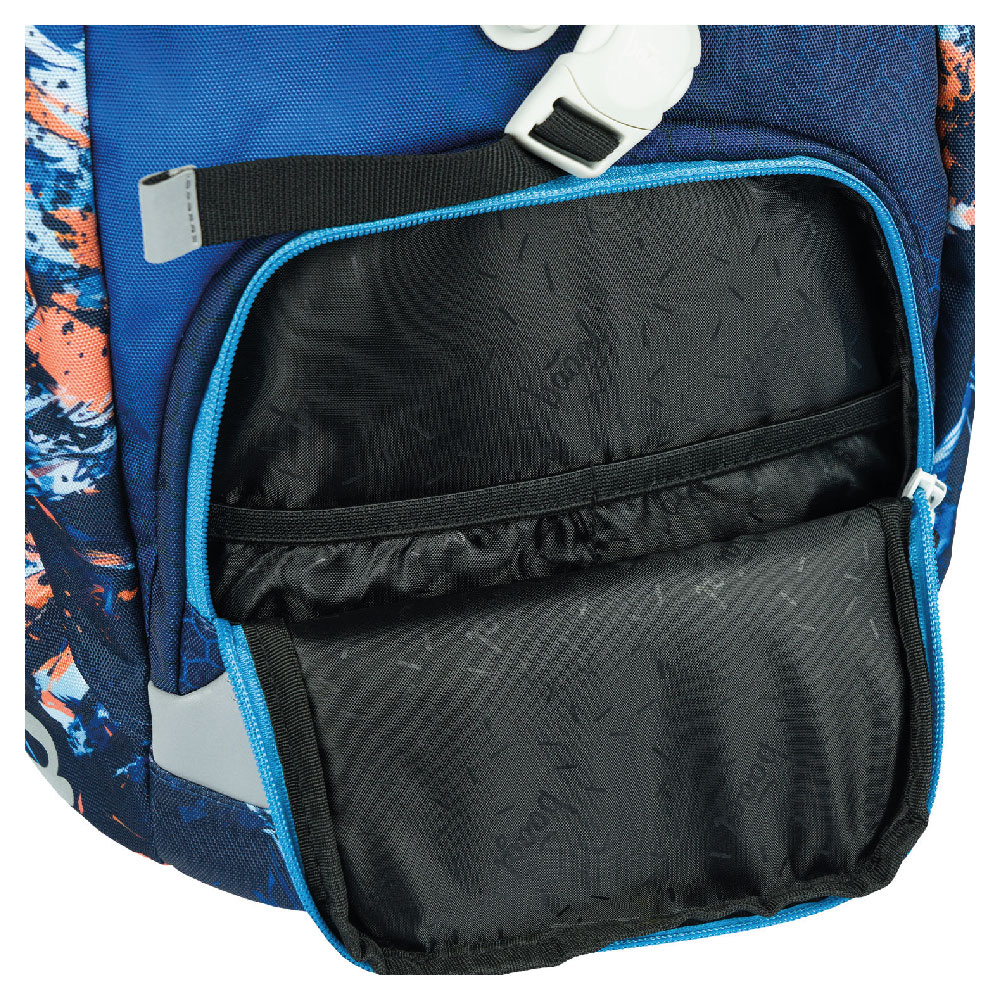 • Wewnątrz tornistra znajduje się przezroczysta kieszeń z planem zajęć i wewnętrznym organizerem, dla równomiernego rozłożenia ciężaru, wraz z elastyczną gumką.