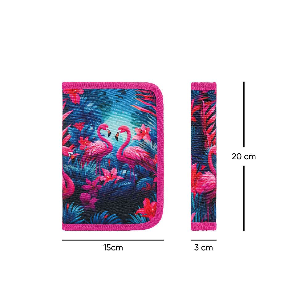 • Jednokomorowy piórnik wyposażony w dwie klapy