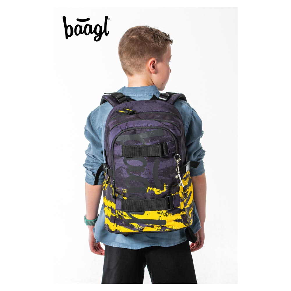 • Na przodzie plecaka znajdują się również dwa paski do mocowania deskorolki.