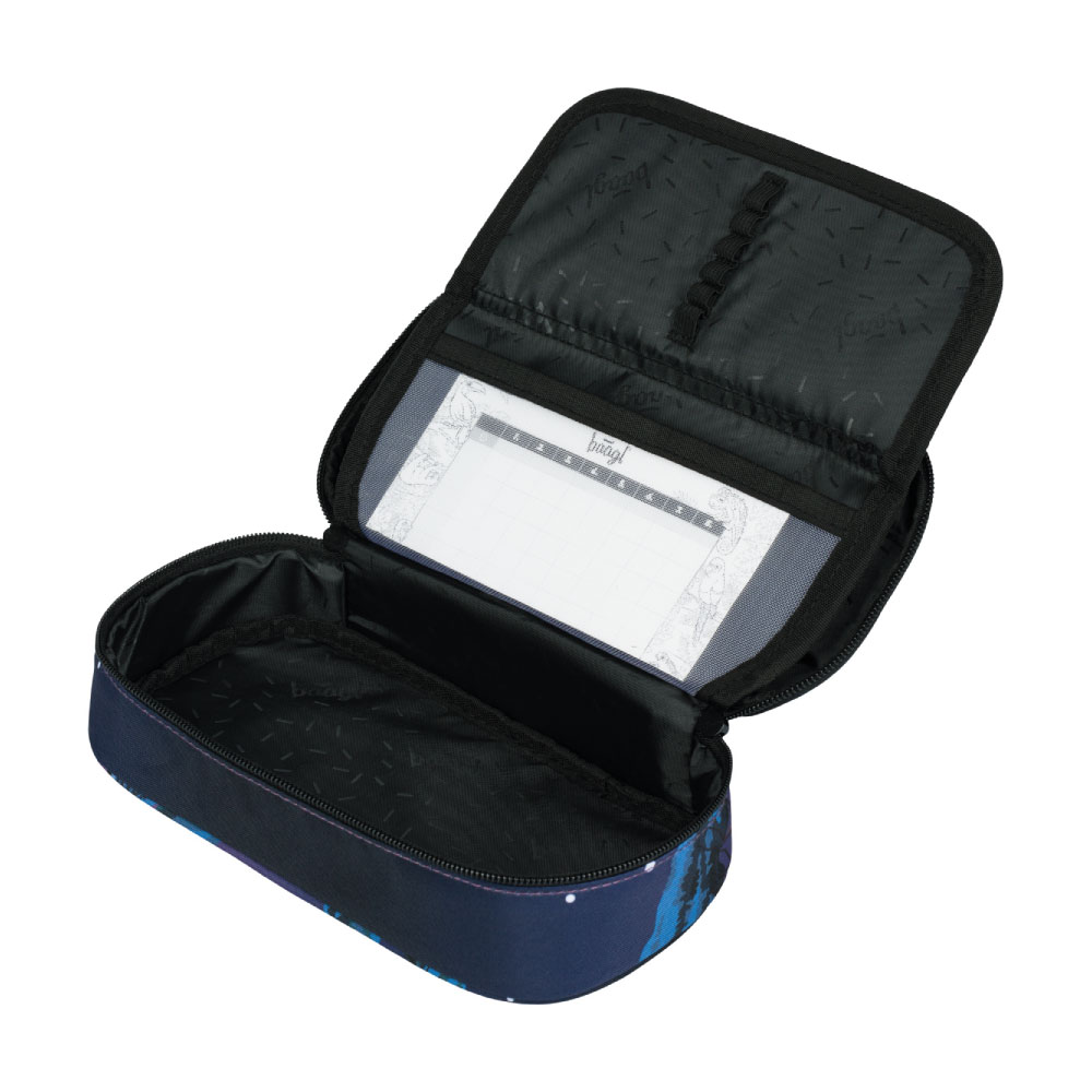 • Twardy piórnik szkolny ze składaną wewnętrzną przegrodą.