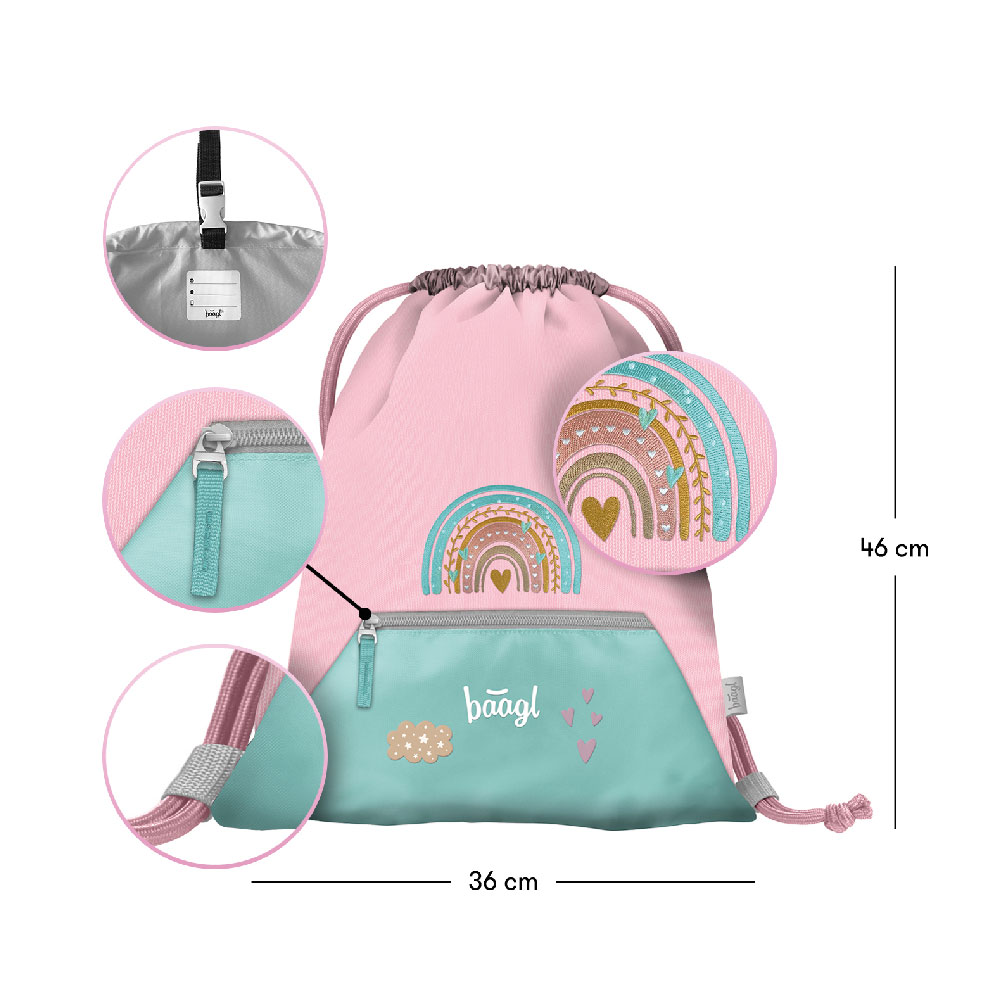 Szkolny set Zippy Różowy - tęcza - tornister, piórnik, worek na buty