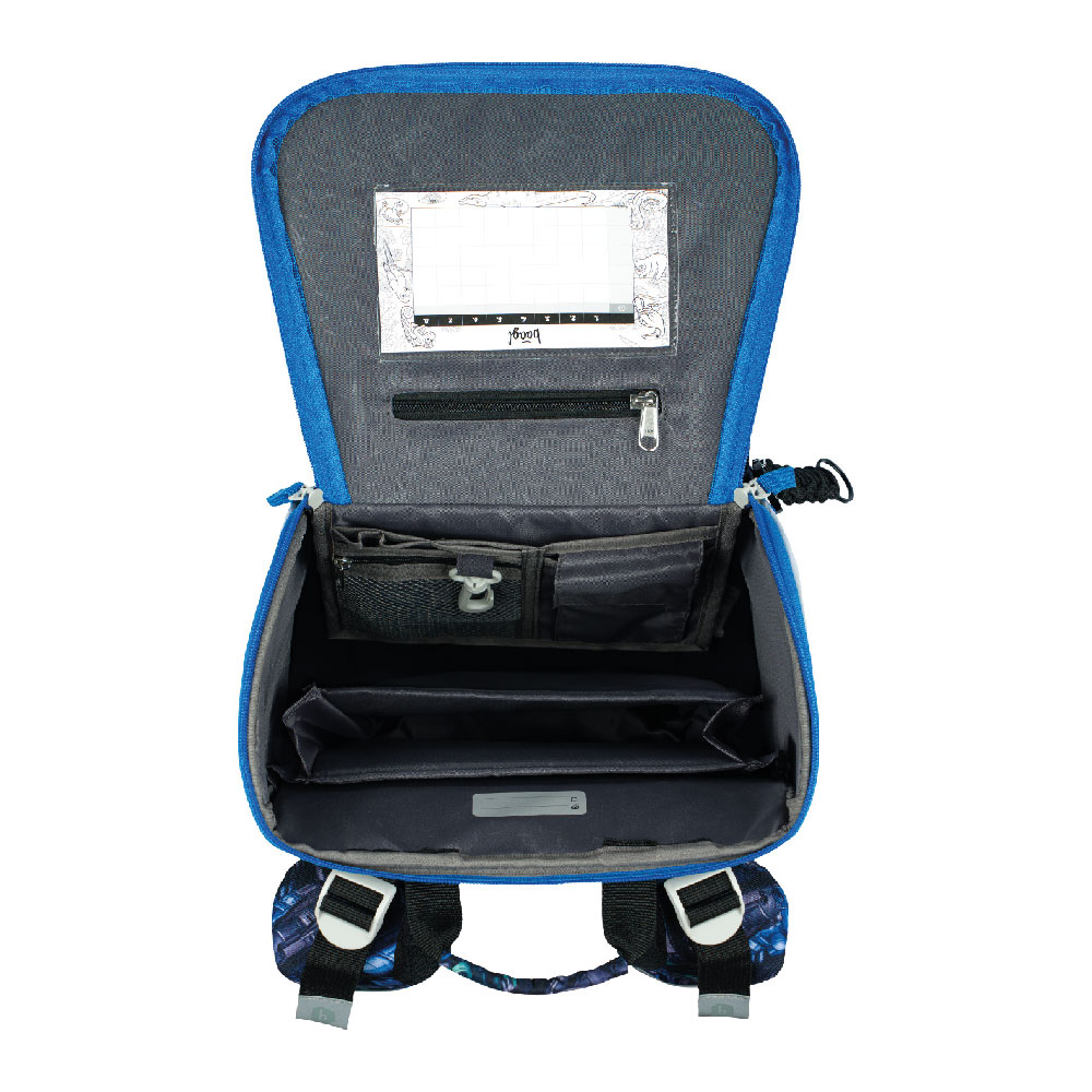 • Wewnątrz tornistra znajduje się przezroczysta kieszeń z planem zajęć i wewnętrznym organizerem, dla równomiernego rozłożenia ciężaru, wraz z elastyczną gumką.