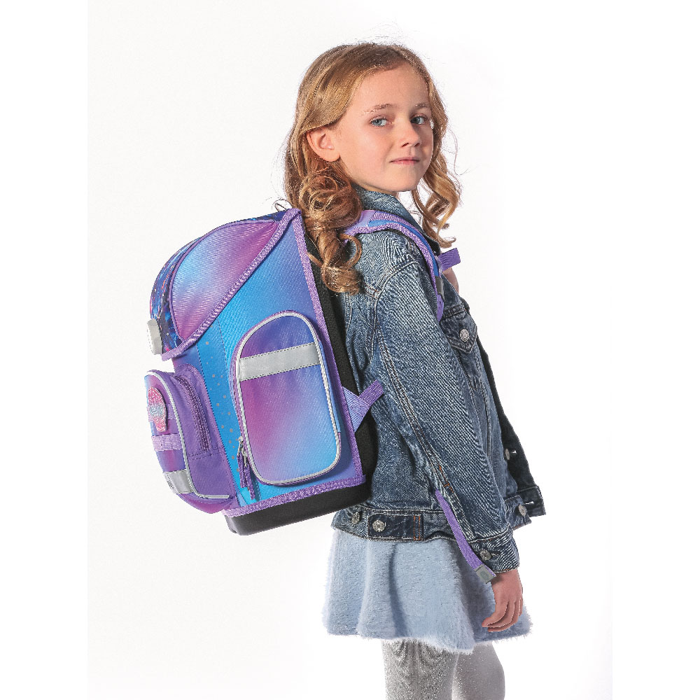 • Wewnątrz tornistra znajduje się przezroczysta kieszeń z planem zajęć i wewnętrznym organizerem, dla równomiernego rozłożenia ciężaru, wraz z elastyczną gumką.