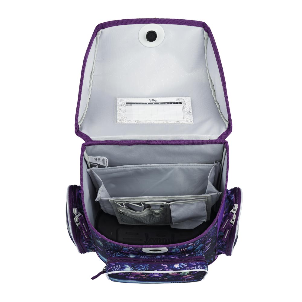 • Wewnątrz tornistra znajduje się przezroczysta kieszeń z planem zajęć i wewnętrznym organizerem, dla równomiernego rozłożenia ciężaru, wraz z elastyczną gumką.
