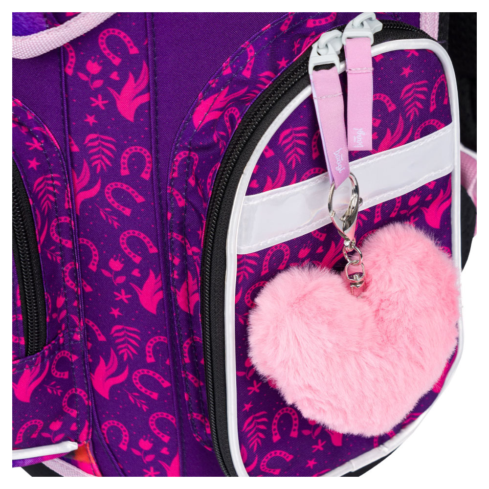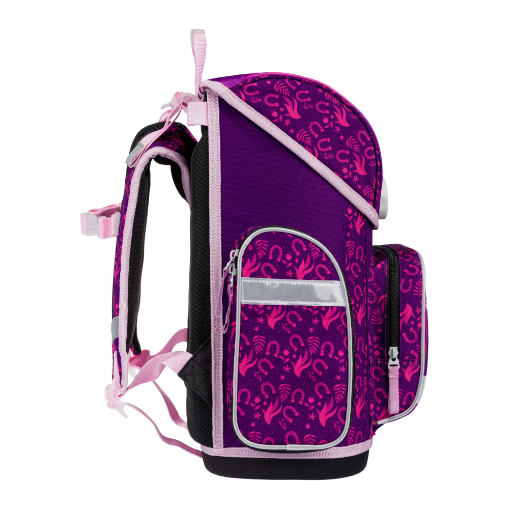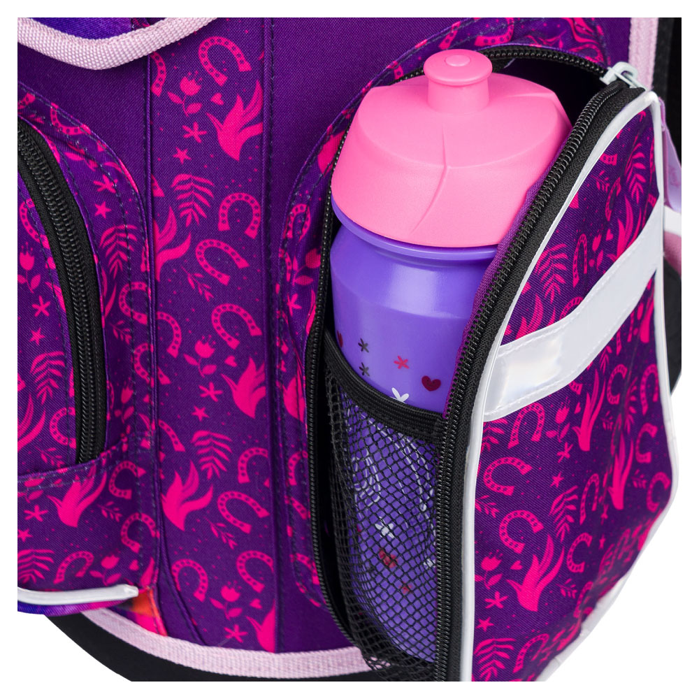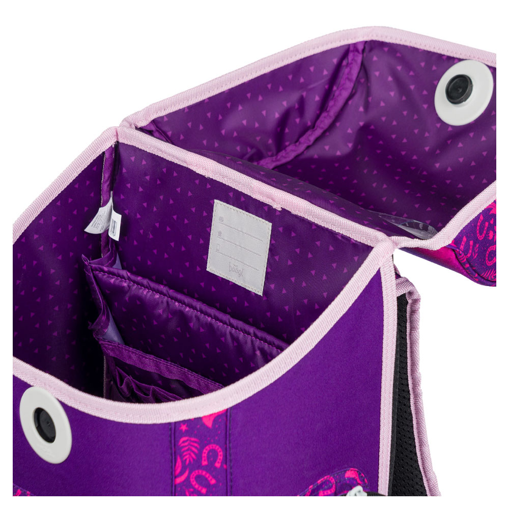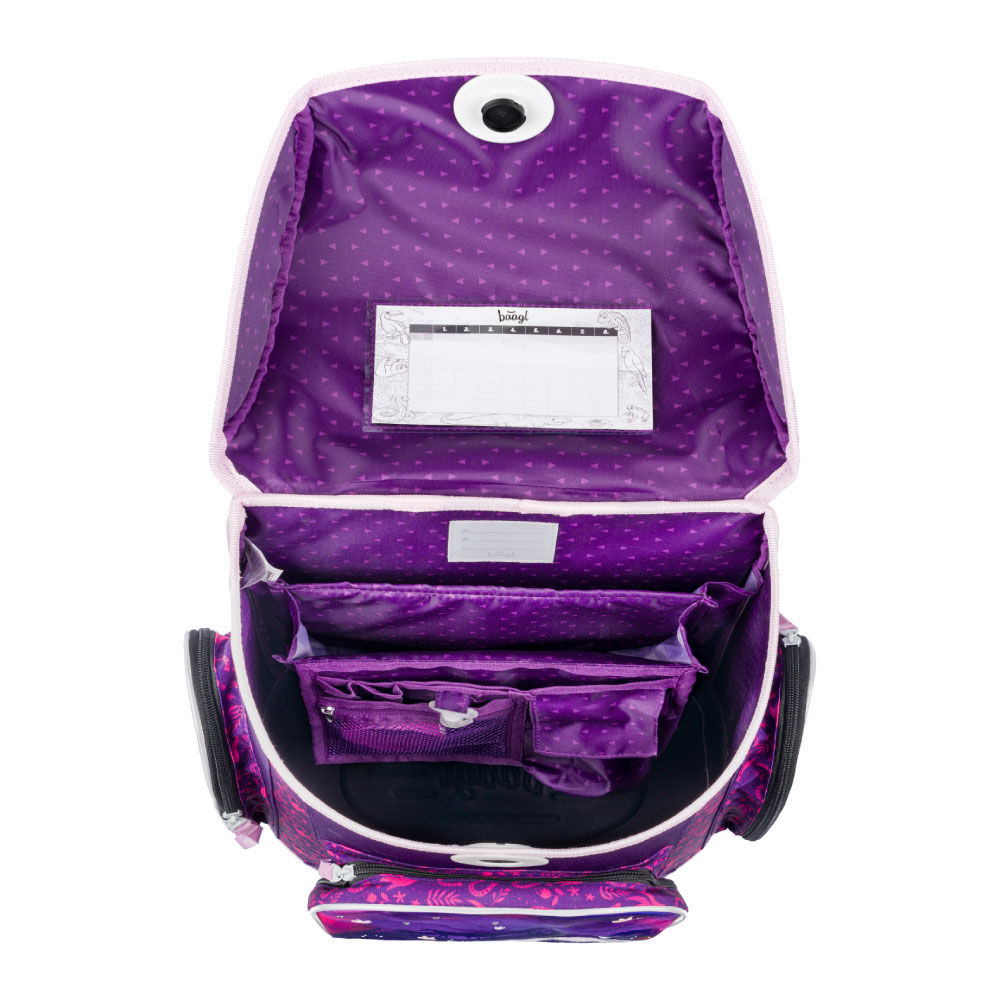 • Wewnątrz tornistra znajduje się przezroczysta kieszeń z planem zajęć i wewnętrznym organizerem, dla równomiernego rozłożenia ciężaru, wraz z elastyczną gumką.