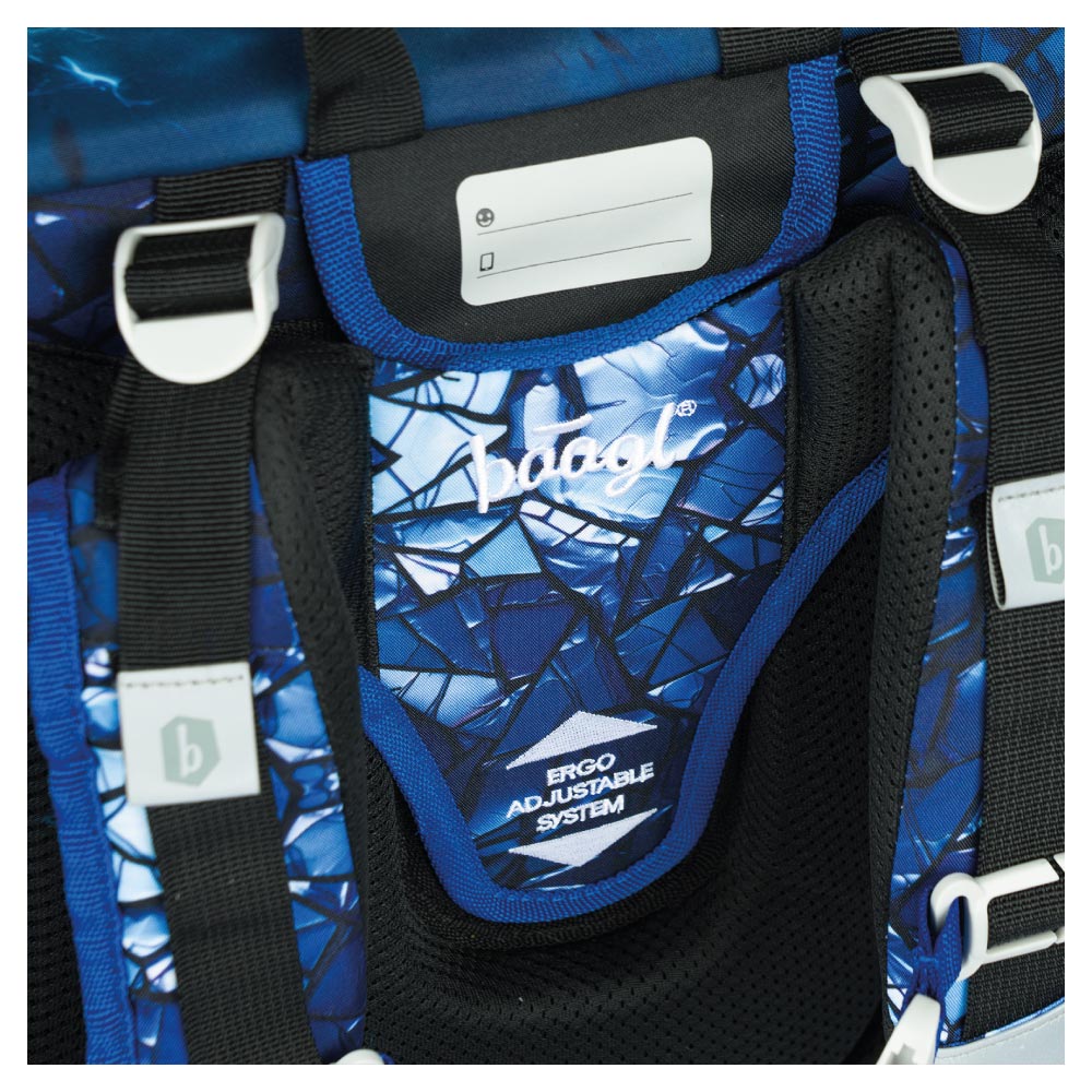• System przesuwnego panelu tylnego BAAGL ADJUSTABLE SYSTEM umożliwia dostosowanie optymalnej pozycji szelek, w stosunku do wzrostu dziecka.
