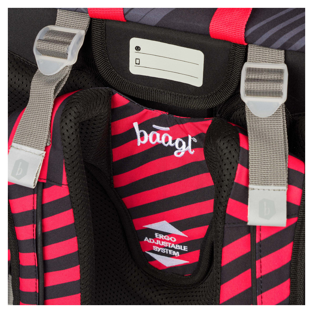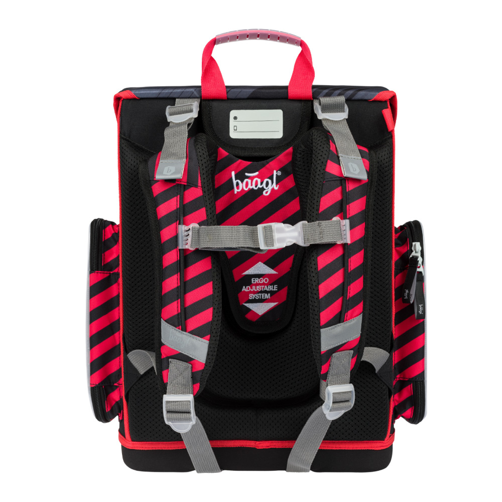• System przesuwnego panelu tylnego BAAGL ADJUSTABLE SYSTEM umożliwia dostosowanie optymalnej pozycji szelek, w stosunku do wzrostu dziecka.