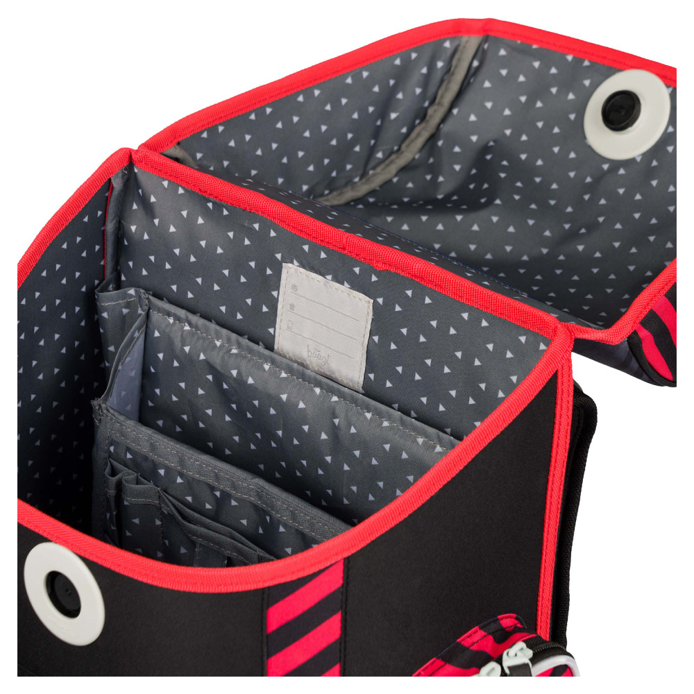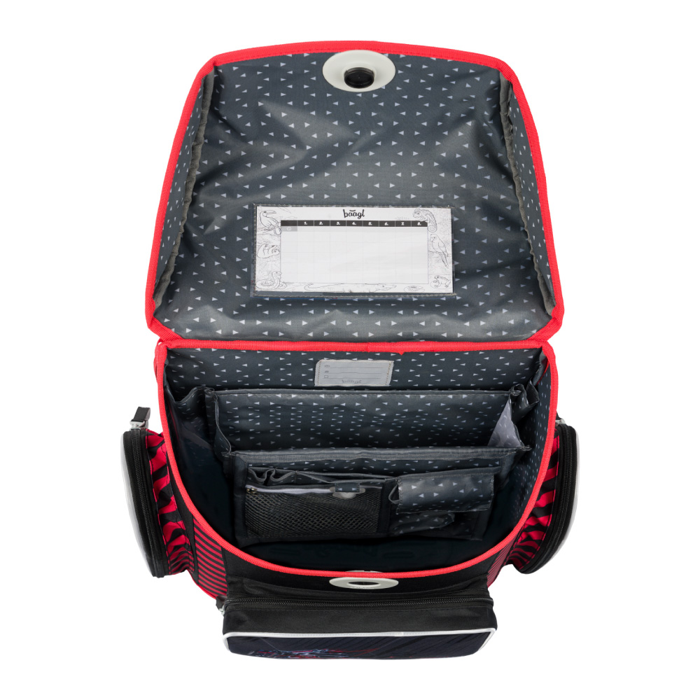 • Wewnątrz tornistra znajduje się przezroczysta kieszeń z planem zajęć i wewnętrznym organizerem, dla równomiernego rozłożenia ciężaru, wraz z elastyczną gumką.