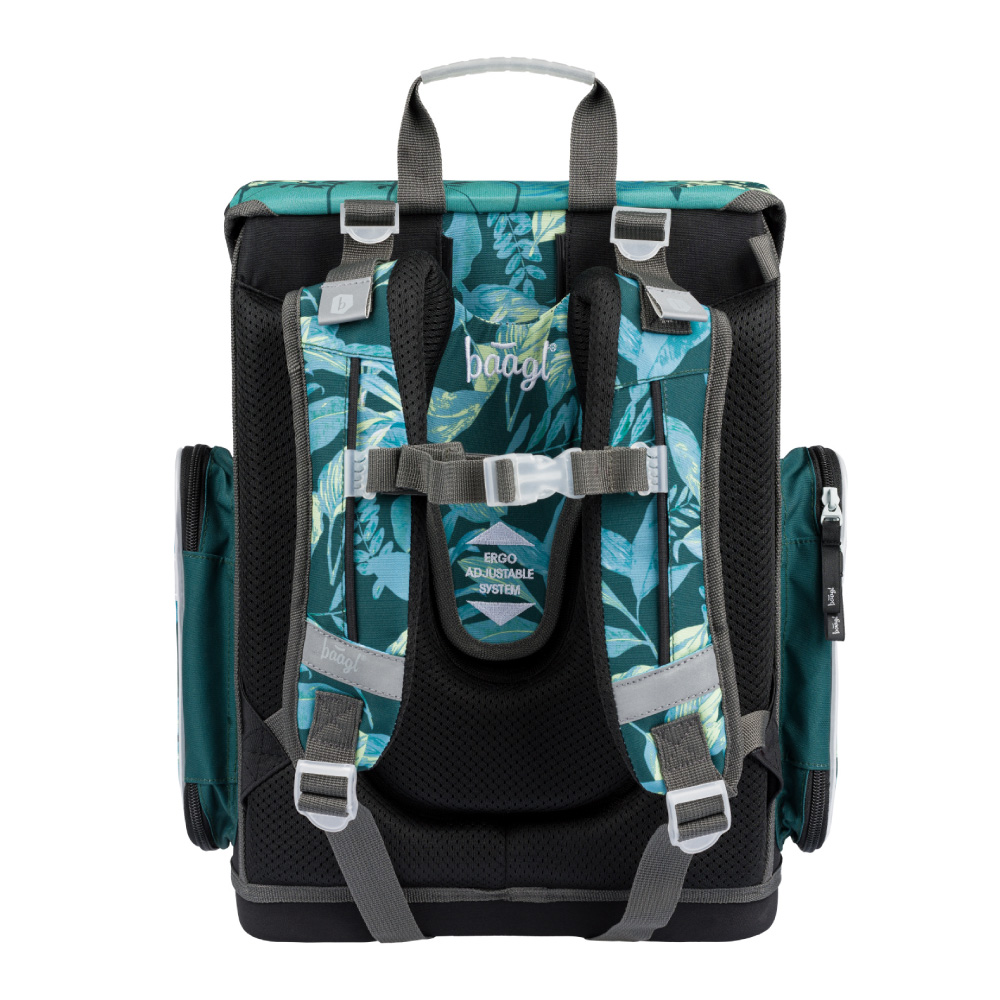 • System przesuwnego panelu tylnego BAAGL ADJUSTABLE SYSTEM umożliwia dostosowanie optymalnej pozycji szelek, w stosunku do wzrostu dziecka.