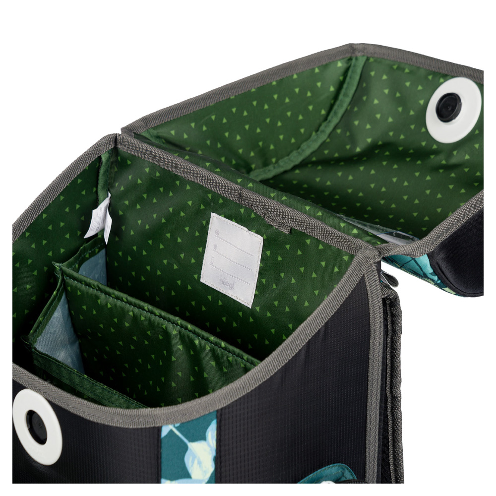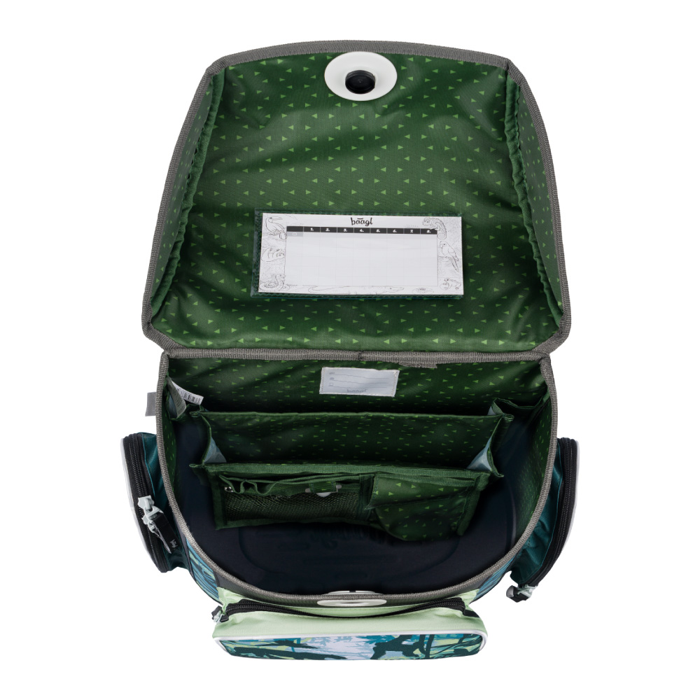 • Wewnątrz tornistra znajduje się przezroczysta kieszeń z planem zajęć i wewnętrznym organizerem, dla równomiernego rozłożenia ciężaru, wraz z elastyczną gumką.