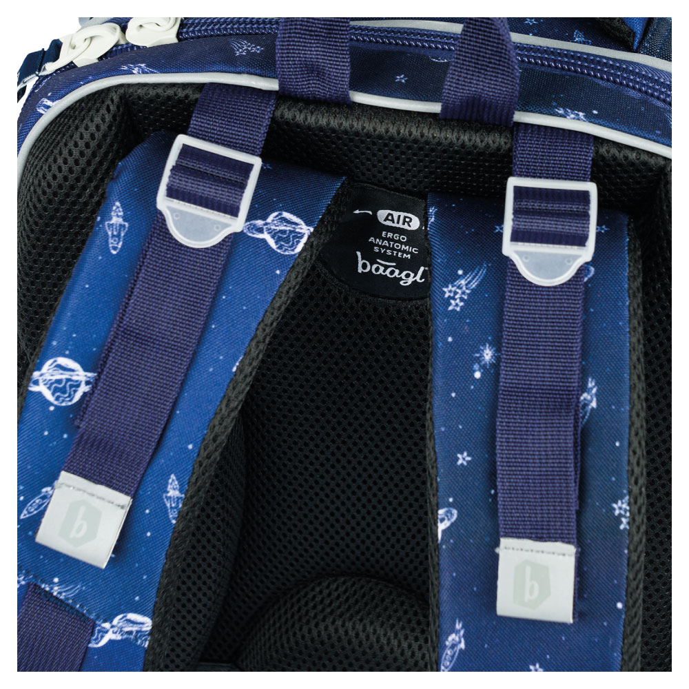 • System przesuwnego panelu tylnego AIR ERGO ADJUSTABLE SYSTEM umożliwia dostosowanie optymalnej pozycji szelek, w stosunku do wzrostu dziecka.