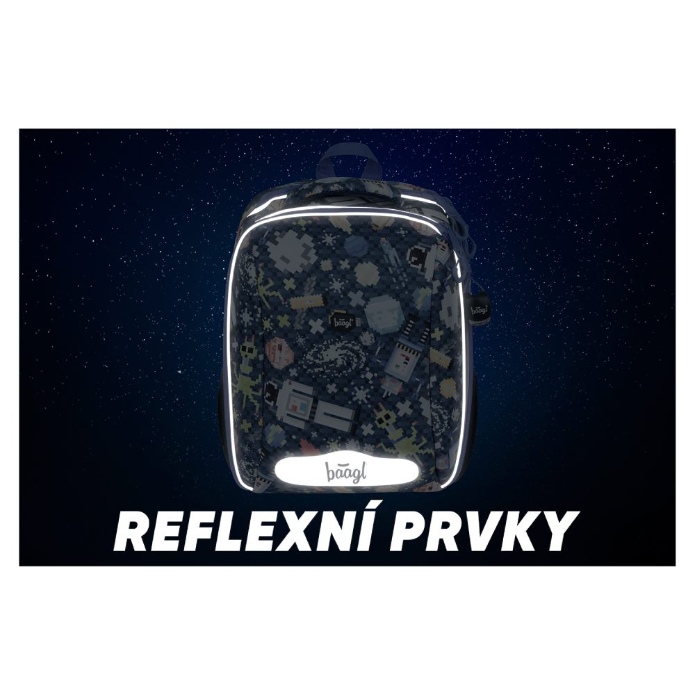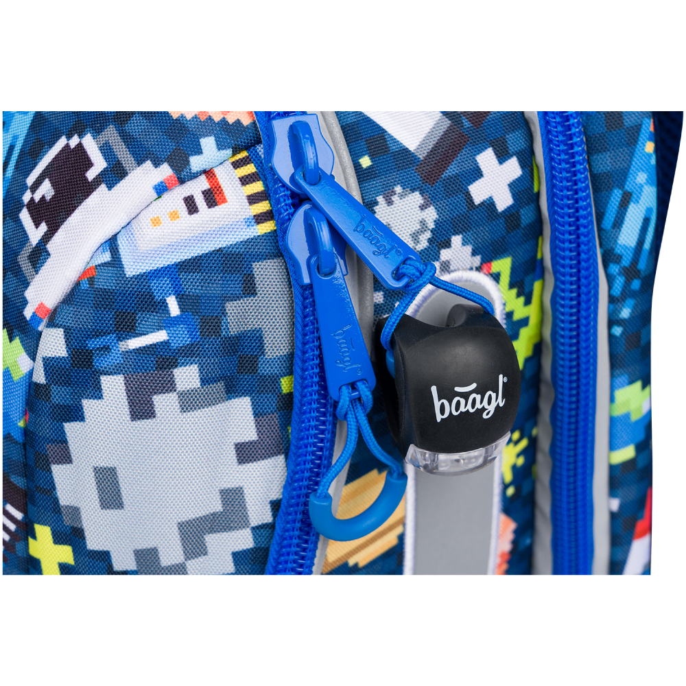 • Plecak jest wyposażony w poręczne światło, bransoletkę oraz elementy odblaskowe.