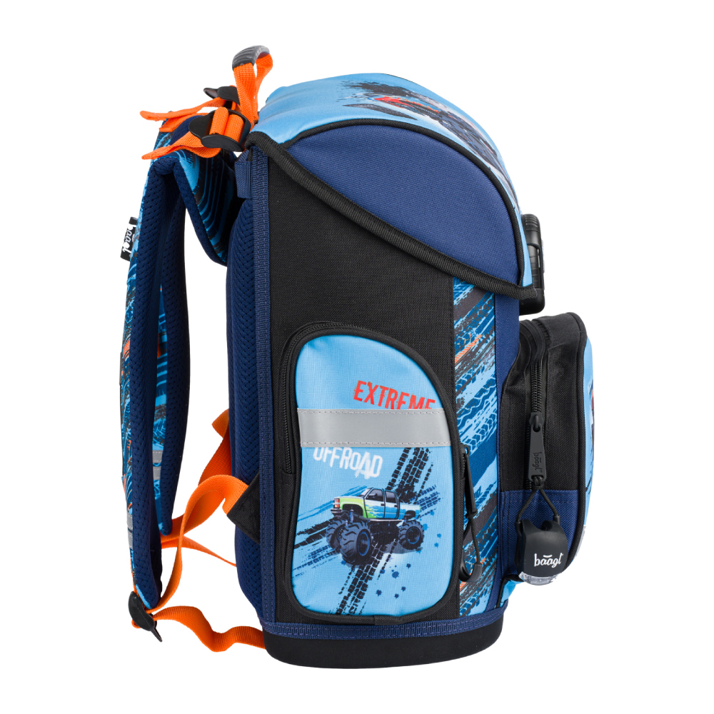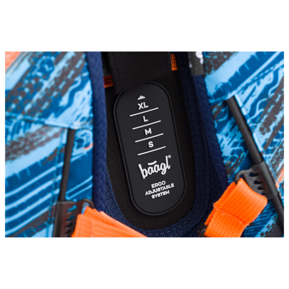 • System przesuwnego panelu tylnego BAAGL ADJUSTABLE SYSTEM umożliwia dostosowanie optymalnej pozycji szelek, w stosunku do wzrostu dziecka.