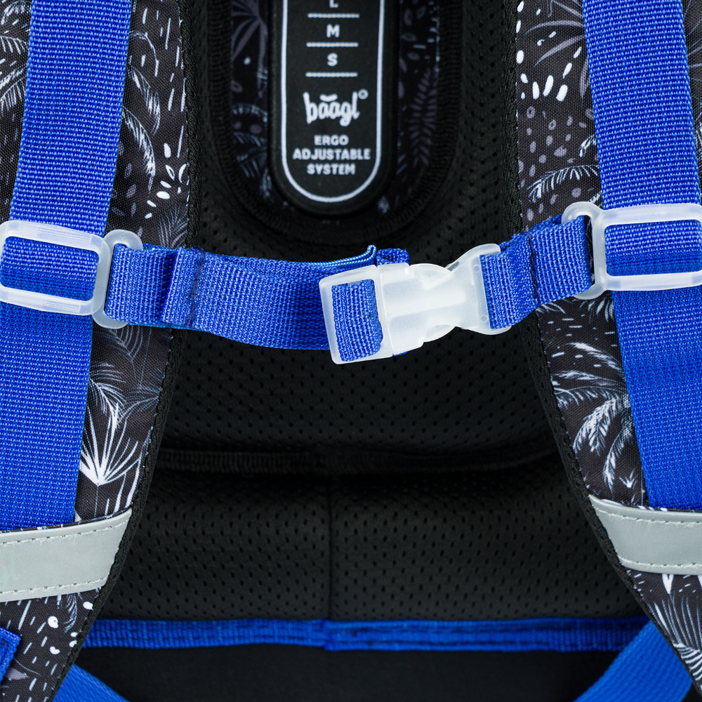 • System przesuwnego panelu tylnego BAAGL ADJUSTABLE SYSTEM umożliwia dostosowanie optymalnej pozycji szelek, w stosunku do wzrostu dziecka.