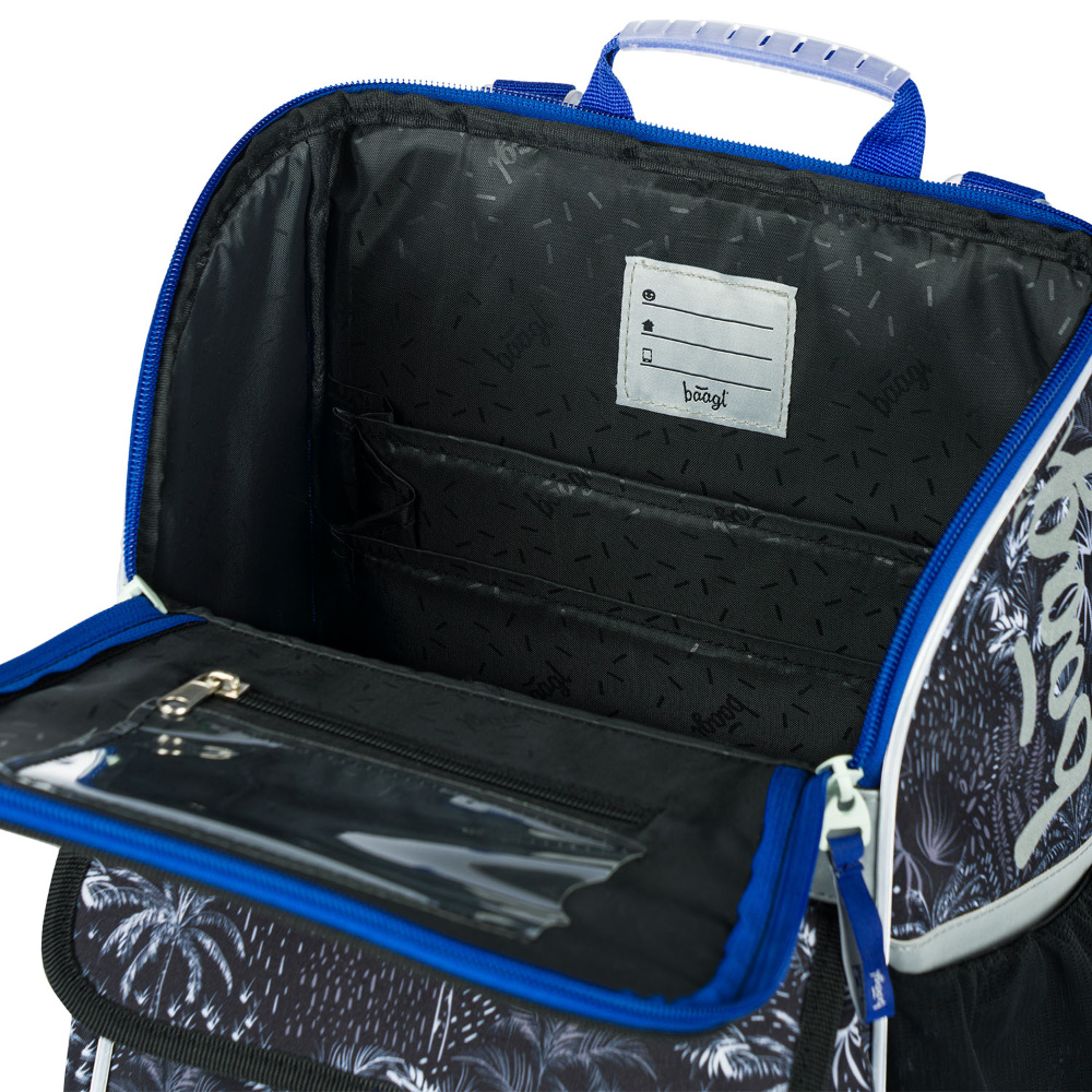 • Wewnątrz tornistra znajduje się przezroczysta kieszeń z planem zajęć i wewnętrznym organizerem, dla równomiernego rozłożenia ciężaru, wraz z elastyczną gumką.