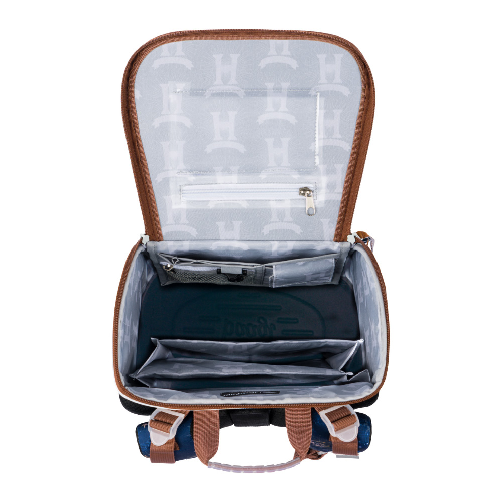 • Wewnątrz tornistra znajduje się przezroczysta kieszeń z planem zajęć i wewnętrznym organizerem, dla równomiernego rozłożenia ciężaru, wraz z elastyczną gumką.
