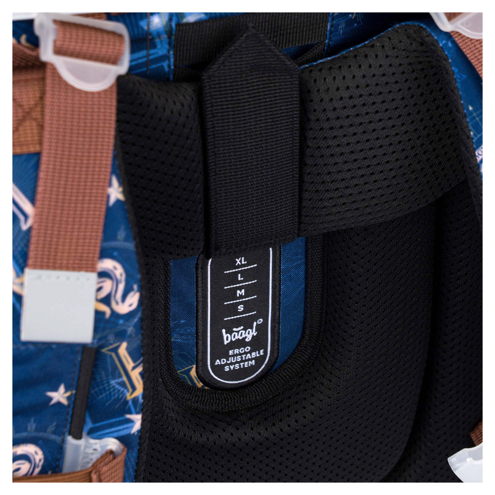 • System przesuwnego panelu tylnego BAAGL ADJUSTABLE SYSTEM umożliwia dostosowanie optymalnej pozycji szelek, w stosunku do wzrostu dziecka.