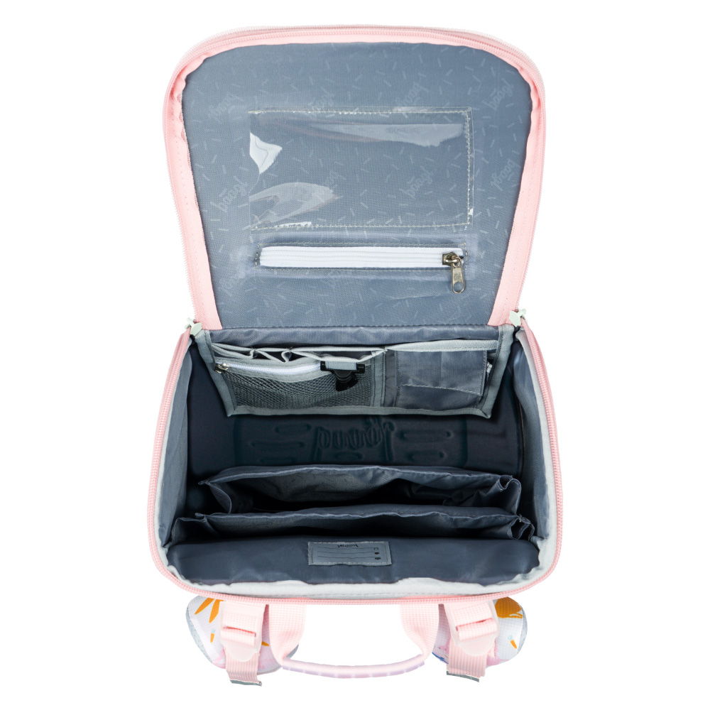• Wewnątrz tornistra znajduje się przezroczysta kieszeń z planem zajęć i wewnętrznym organizerem, dla równomiernego rozłożenia ciężaru, wraz z elastyczną gumką.